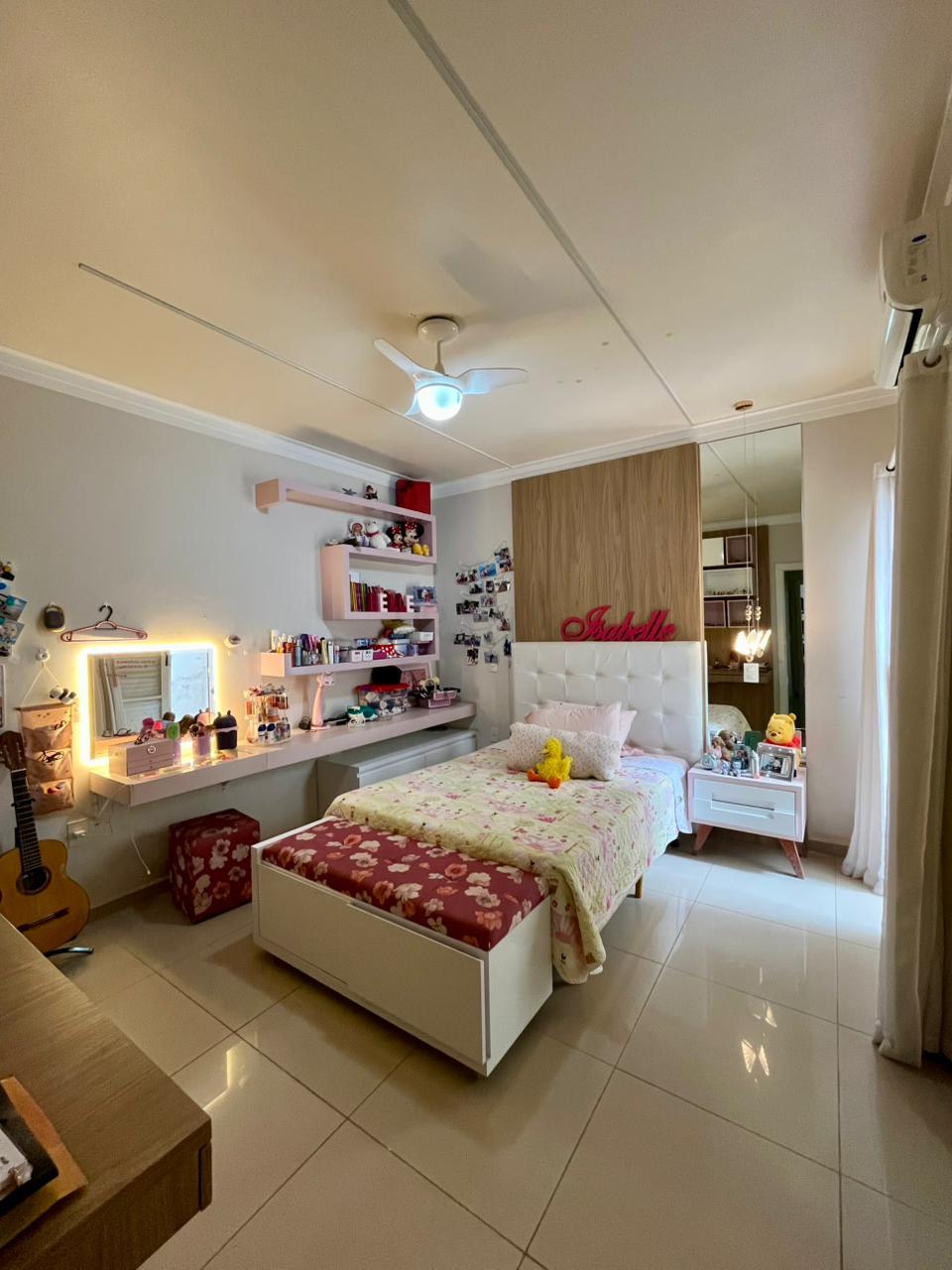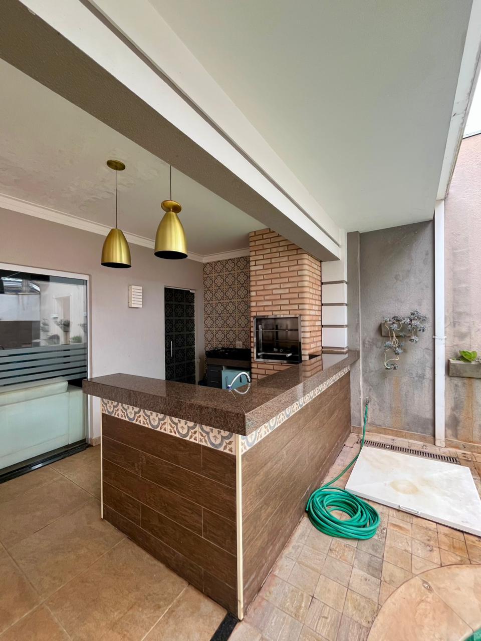 Casa contendo, mezanino, 3 suítes com closet, sala de tv, cozinha, lavabo, área de serviço, despensa, banheiro , área gourmet, piscina, 2 vagas de garagem.