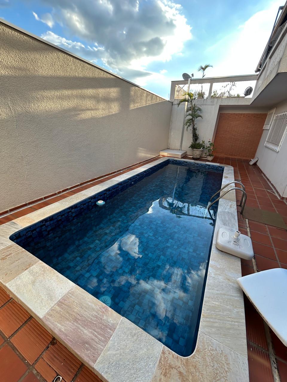 Pavimento inferior: salas de tv, jantar e estar, cozinha, banheiro social, lavanderia, edícula nos fundos com quarto, sala e banheiro, 3 vagas de garagem