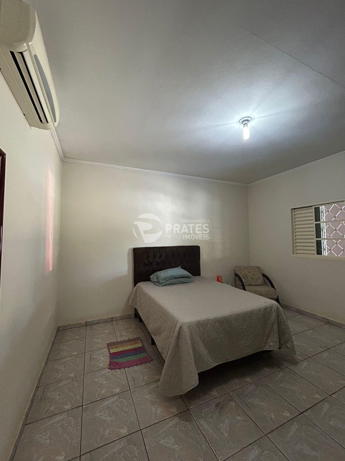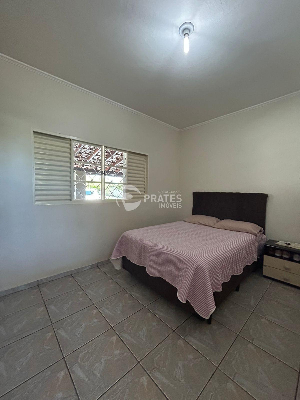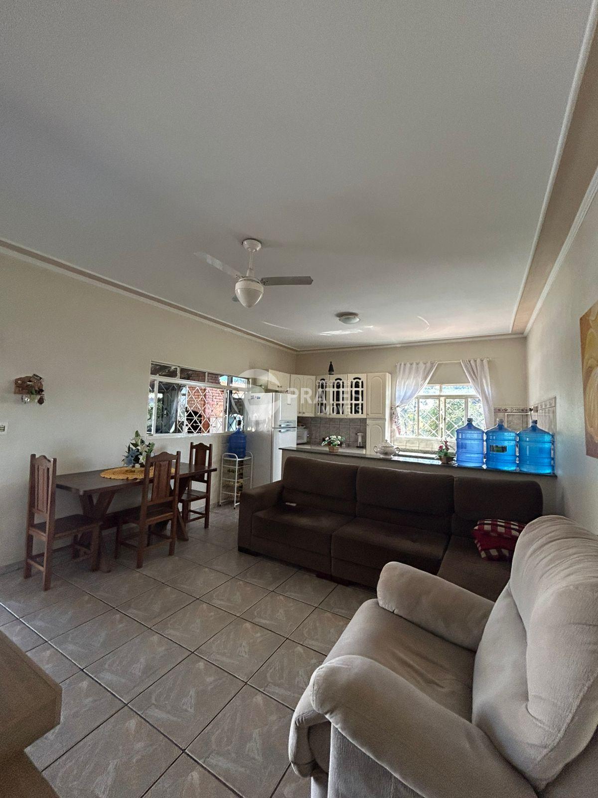 Casa com 2 dormitórios amplos, 1 com ar condicionado, 1 banheiro social, 2 cozinhas interna e externa, varanda, churrasqueira, banheiro externo, lavanderia, quartinho de despejo, viveiro, quintal com variedades de frutas, garagem coberta para 5 carros