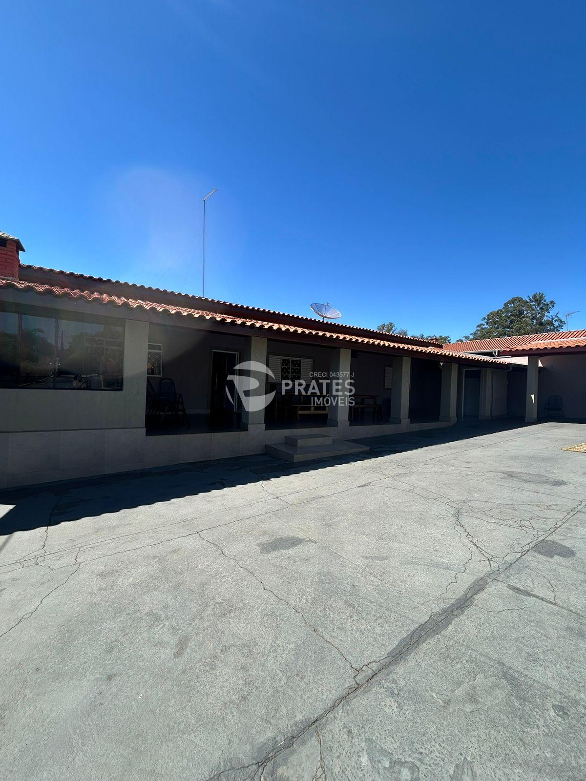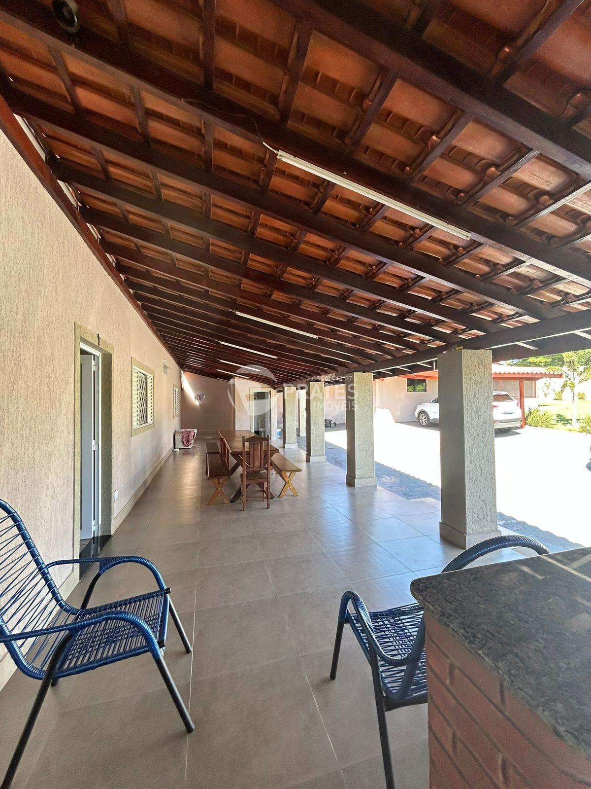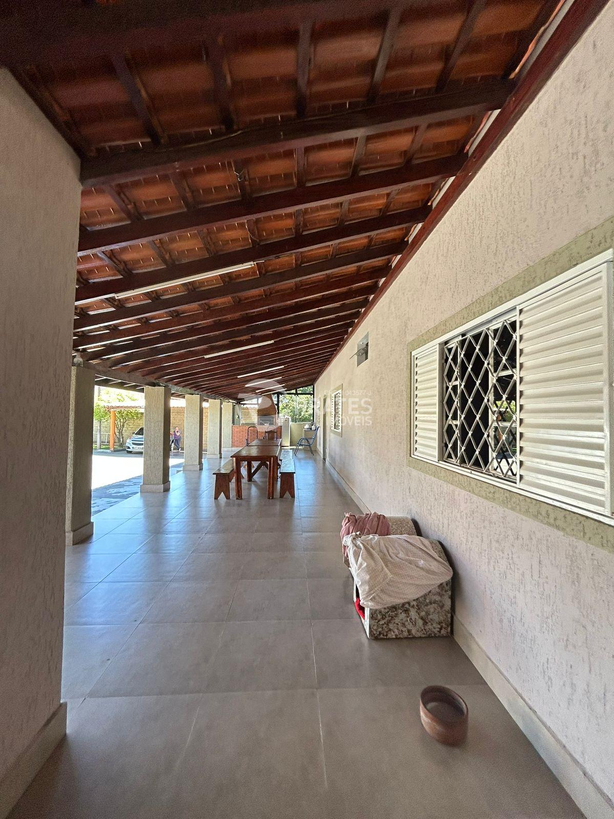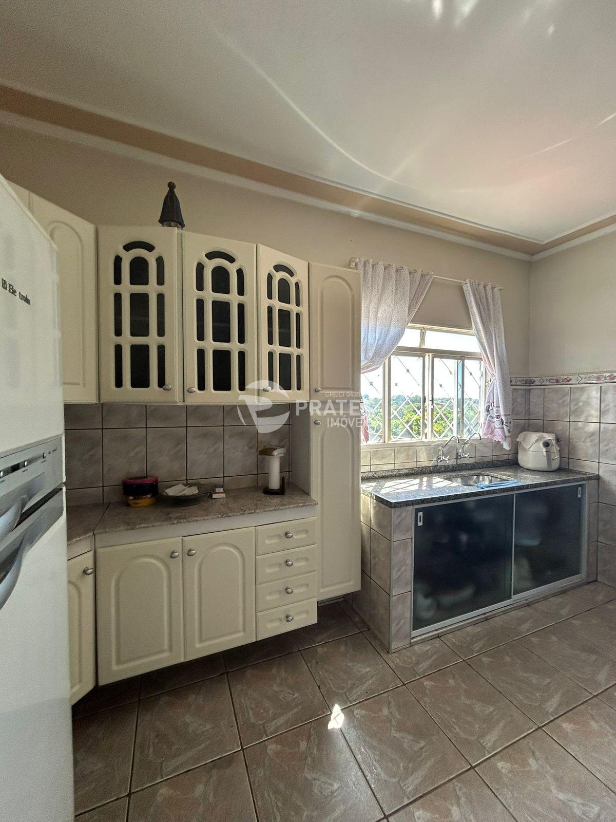 Casa com 2 dormitórios amplos, 1 com ar condicionado, 1 banheiro social, 2 cozinhas interna e externa, varanda, churrasqueira, banheiro externo, lavanderia, quartinho de despejo, viveiro, quintal com variedades de frutas, garagem coberta para 5 carros