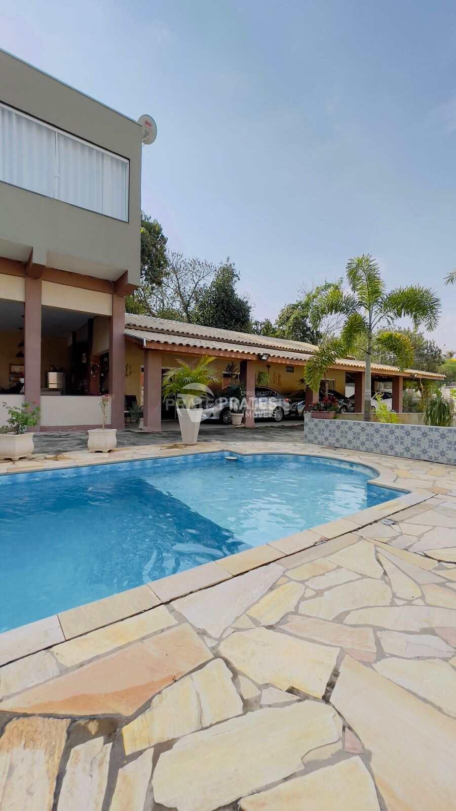 Chácara contendo sobrado com 3 dormitórios no piso superior sendo uma suíte, sala de tv, escritório, ampla cozinha integrada com armários e ilha, piso térreo com 2 suítes, sala de tv, amplo salão de festas com churrasqueira, forno a lenha, 2 banheiros, outro quiosque ao lado, piscina, mine campo e 4 vagas de garagem.