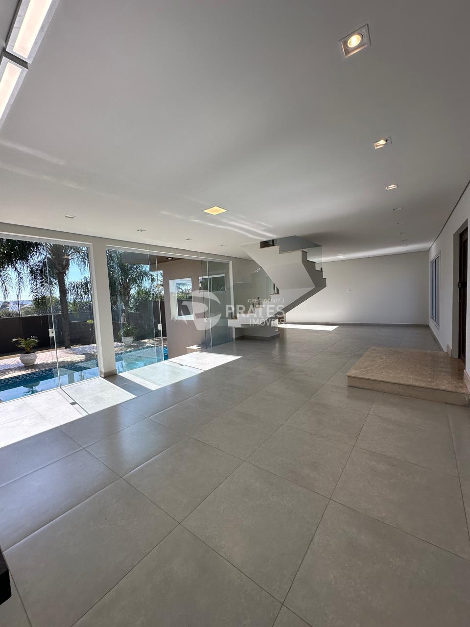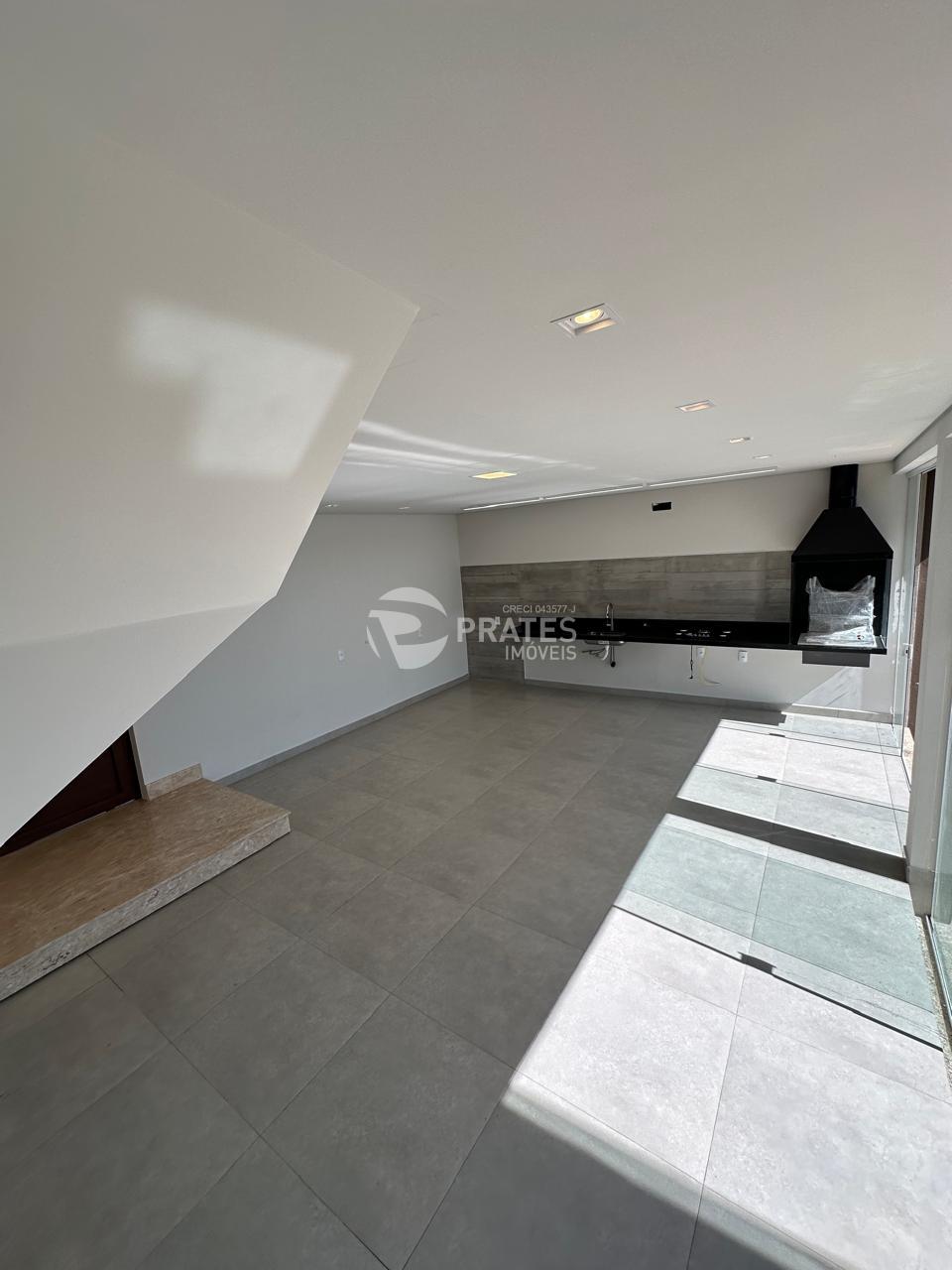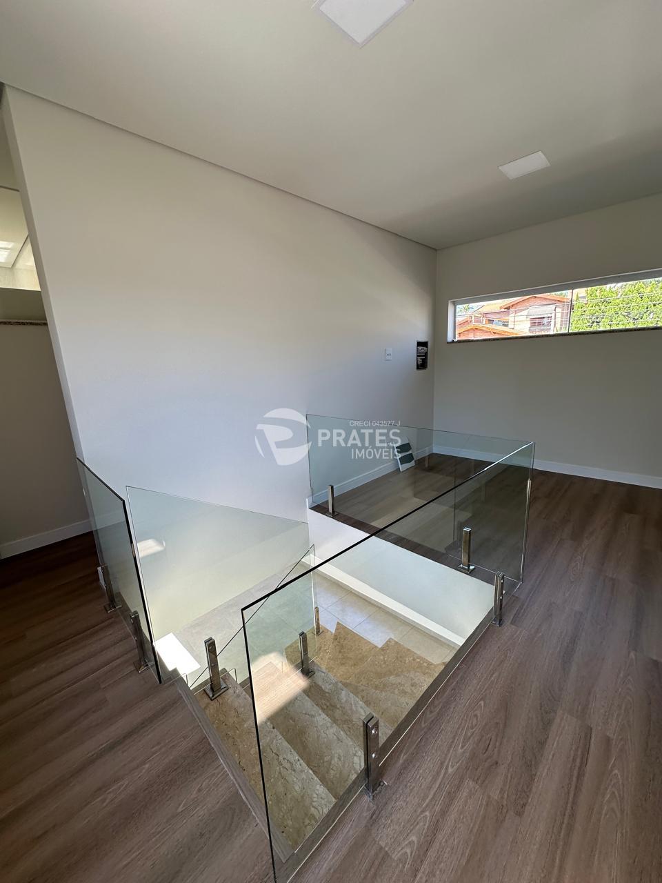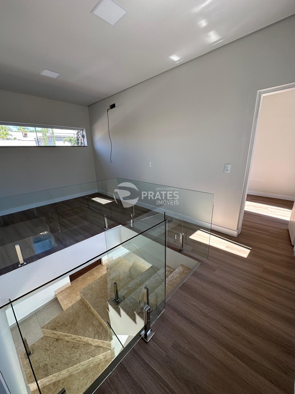 Pavimento superior; 3 suítes, onde tem um suíte master com sacada, sala de leitura, 2 vagas,