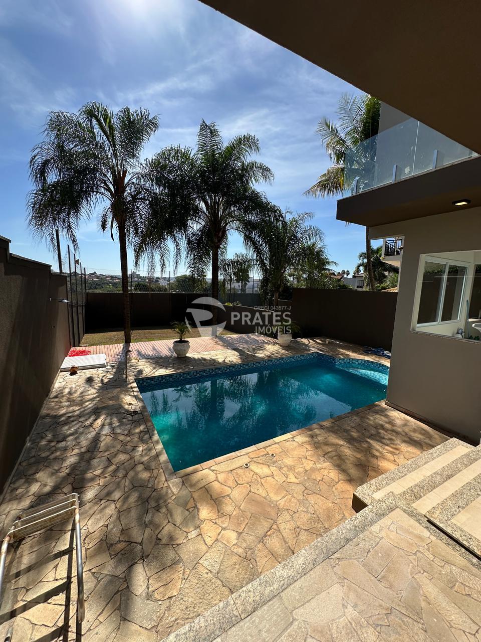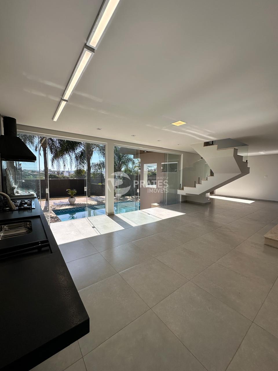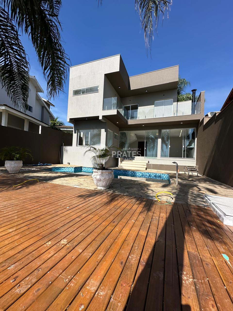 Pavimento térreo; cozinha gourmet com churrasqueira, sala, piscina com deck em madeira, área de serviço, banheiro social, jardim