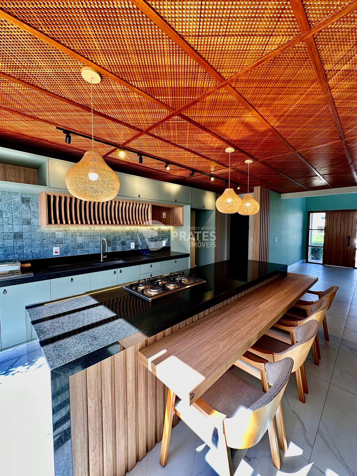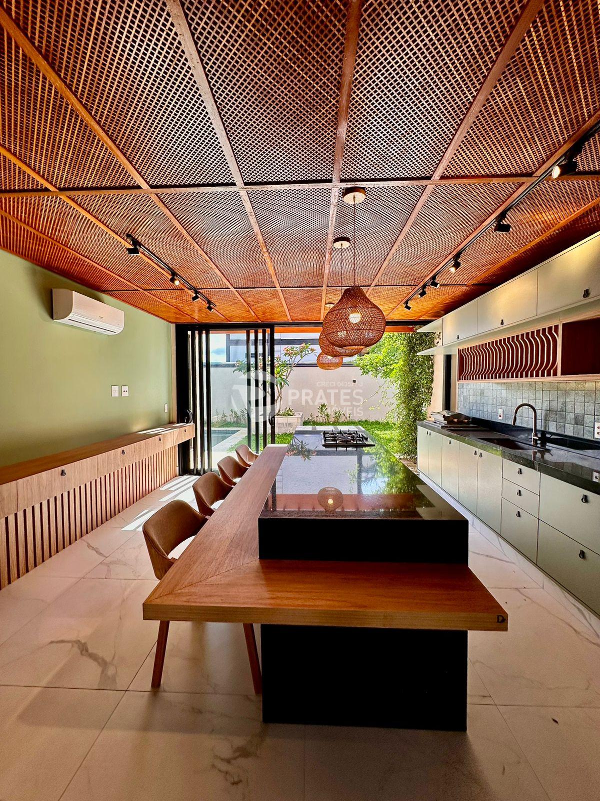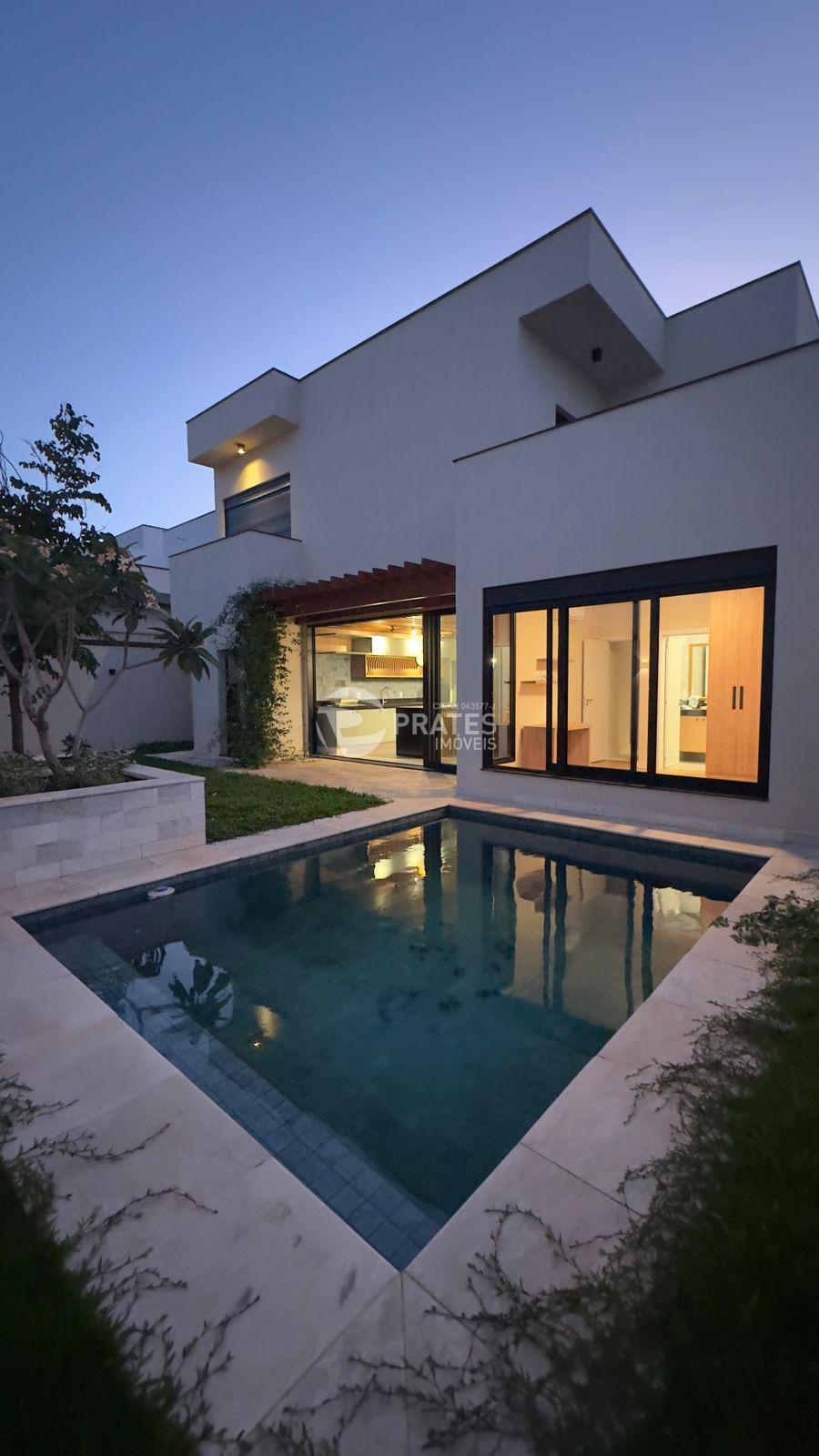 Casa contendo 3 suítes, lavabo, sala de estar e jantar integradas com pé direito duplo, cozinha completa equipada com lava louças, cooktop, forno, e churrasqueira, banheiro social, piscina, ar condicionado em todos os ambientes 2 vagas de garagem.