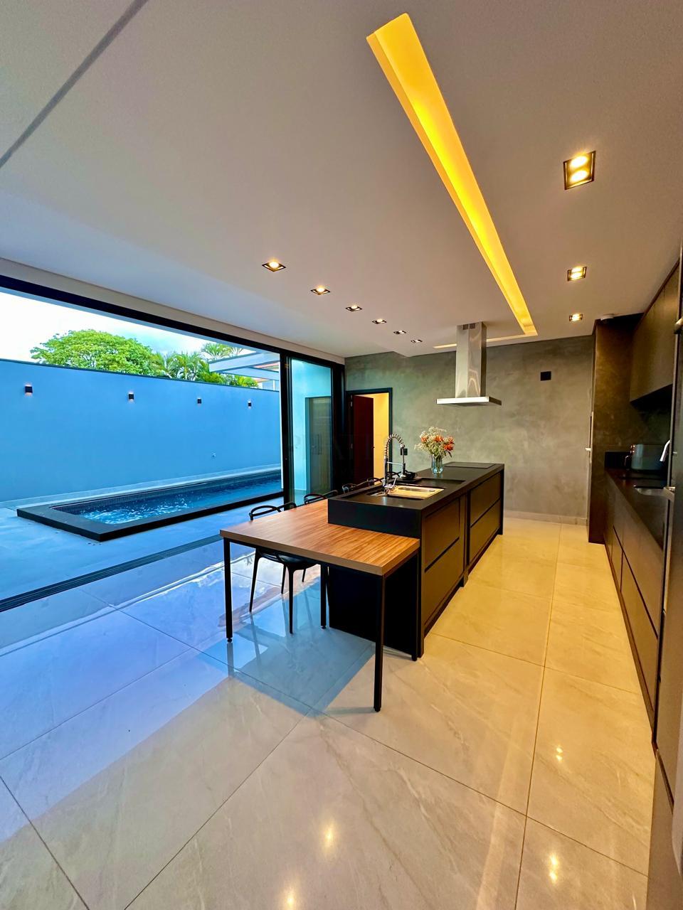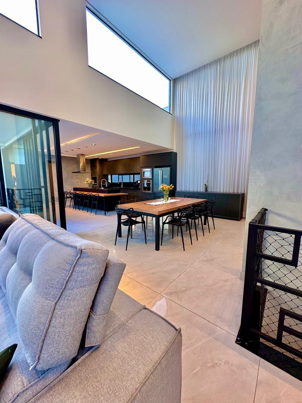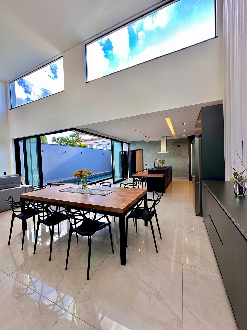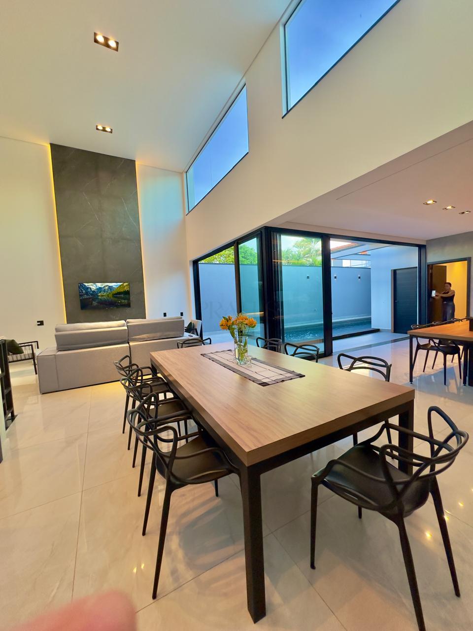Casa térrea contendo 3 dormitórios, sendo 1 suíte master com closet , banheira de hidromassagem, 1 demi-suíte, salas de tv e jantar integrados com cozinha gourmet, churrasqueira, lavabo, piscina, banheiro externo, lavanderia, escritório, academia privativa, 2 vagas cobertas