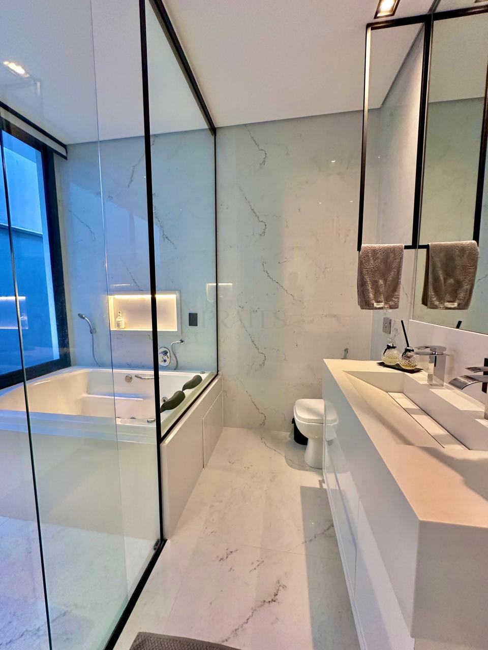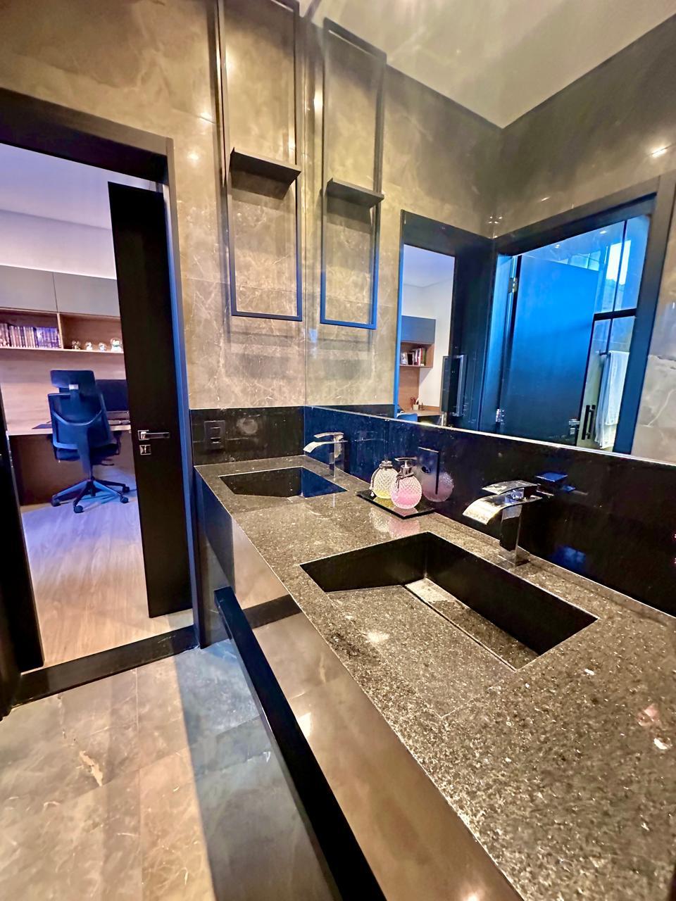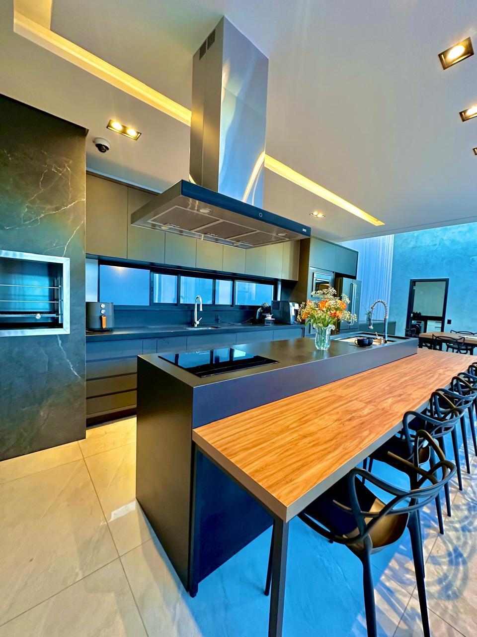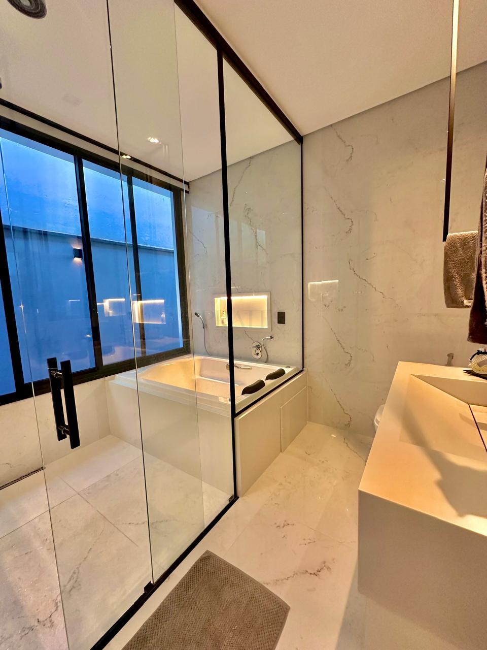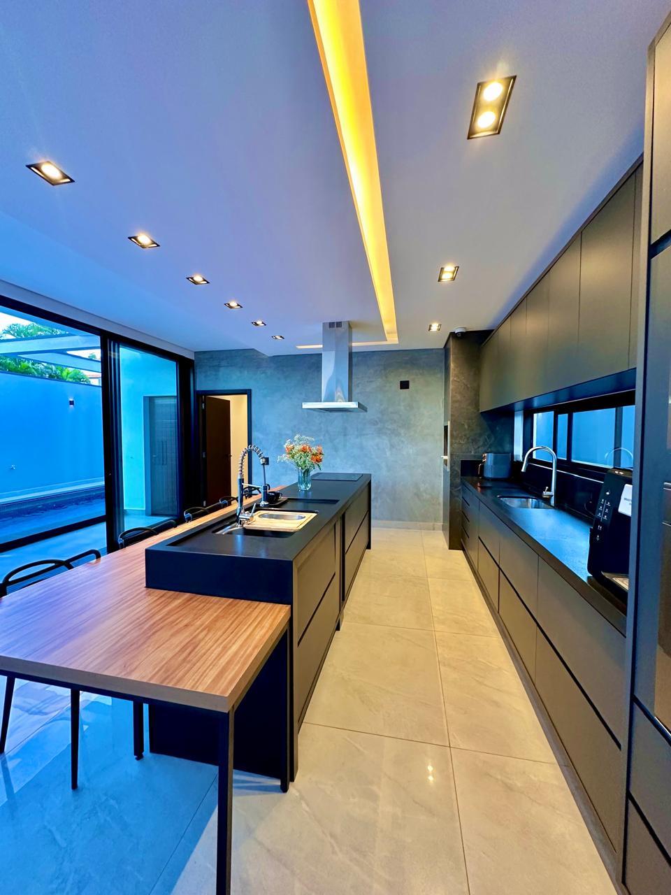 Casa térrea contendo 3 dormitórios, sendo 1 suíte master com closet , banheira de hidromassagem, 1 demi-suíte, salas de tv e jantar integrados com cozinha gourmet, churrasqueira, lavabo, piscina, banheiro externo, lavanderia, escritório, academia privativa, 2 vagas cobertas
