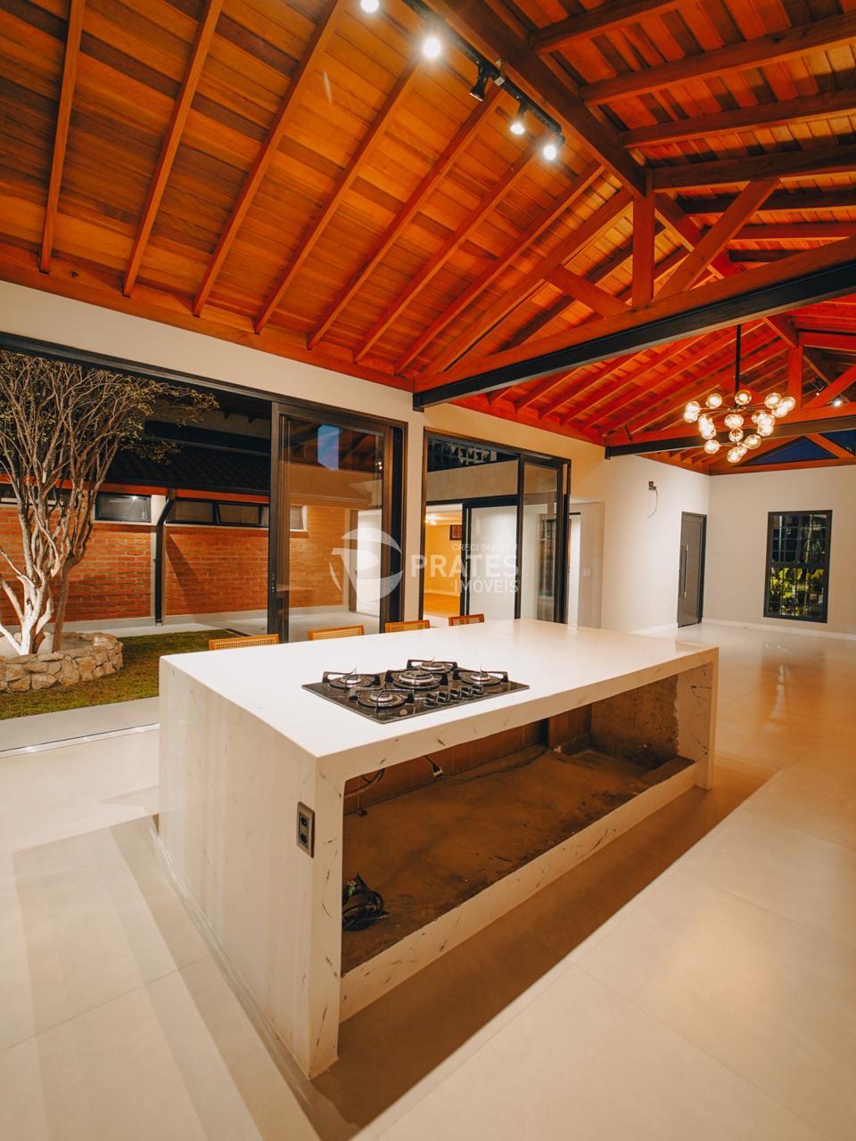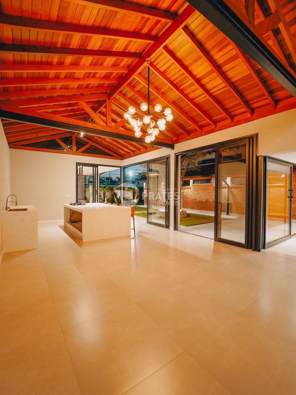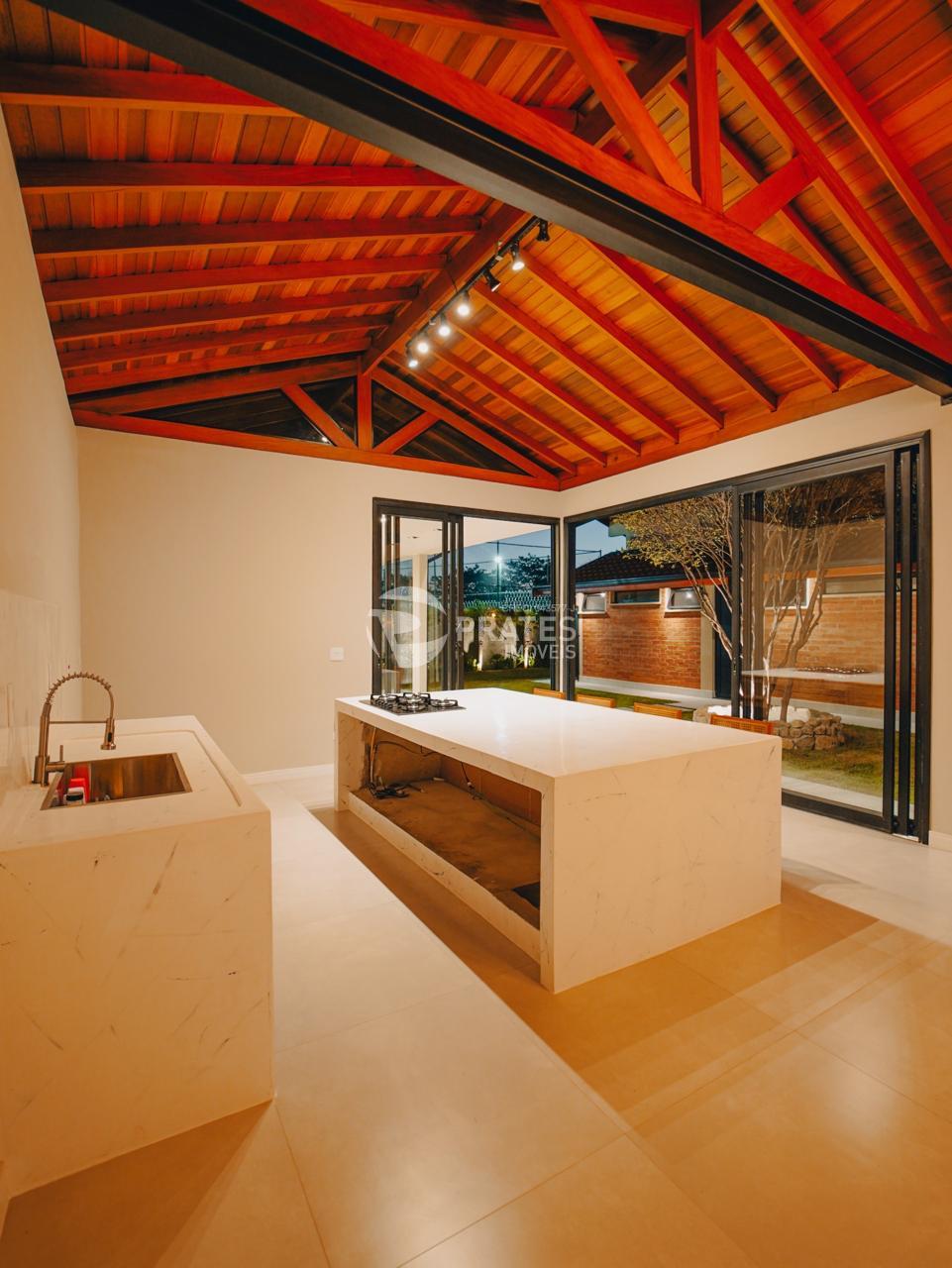 A garagem para 3 carros complementa o projeto, unindo estilo e funcionalidade.
