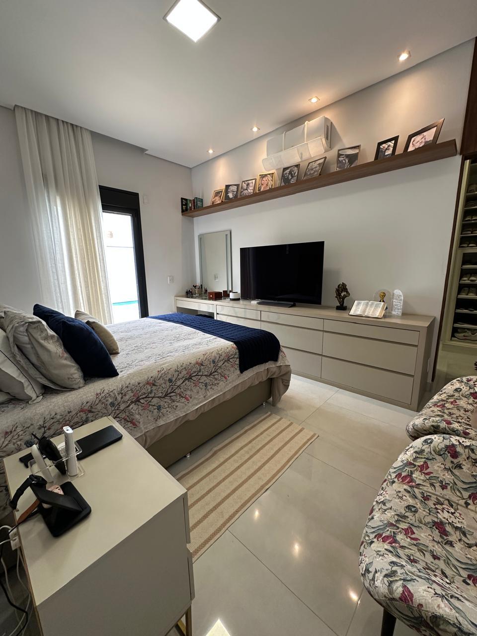 Casa com 3 dormitórios sendo a master com closet, 1 demi-suíte armários, salas de jantar e tv com pé direito alto, ar condicionado em todos os ambientes, lavabo, cozinha e lavanderia planejadas, espaço gourmet com churrasqueira, piscina, banheiro externo, 2 vagas coberta