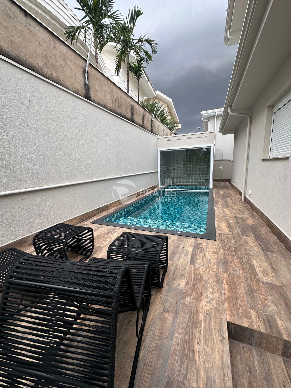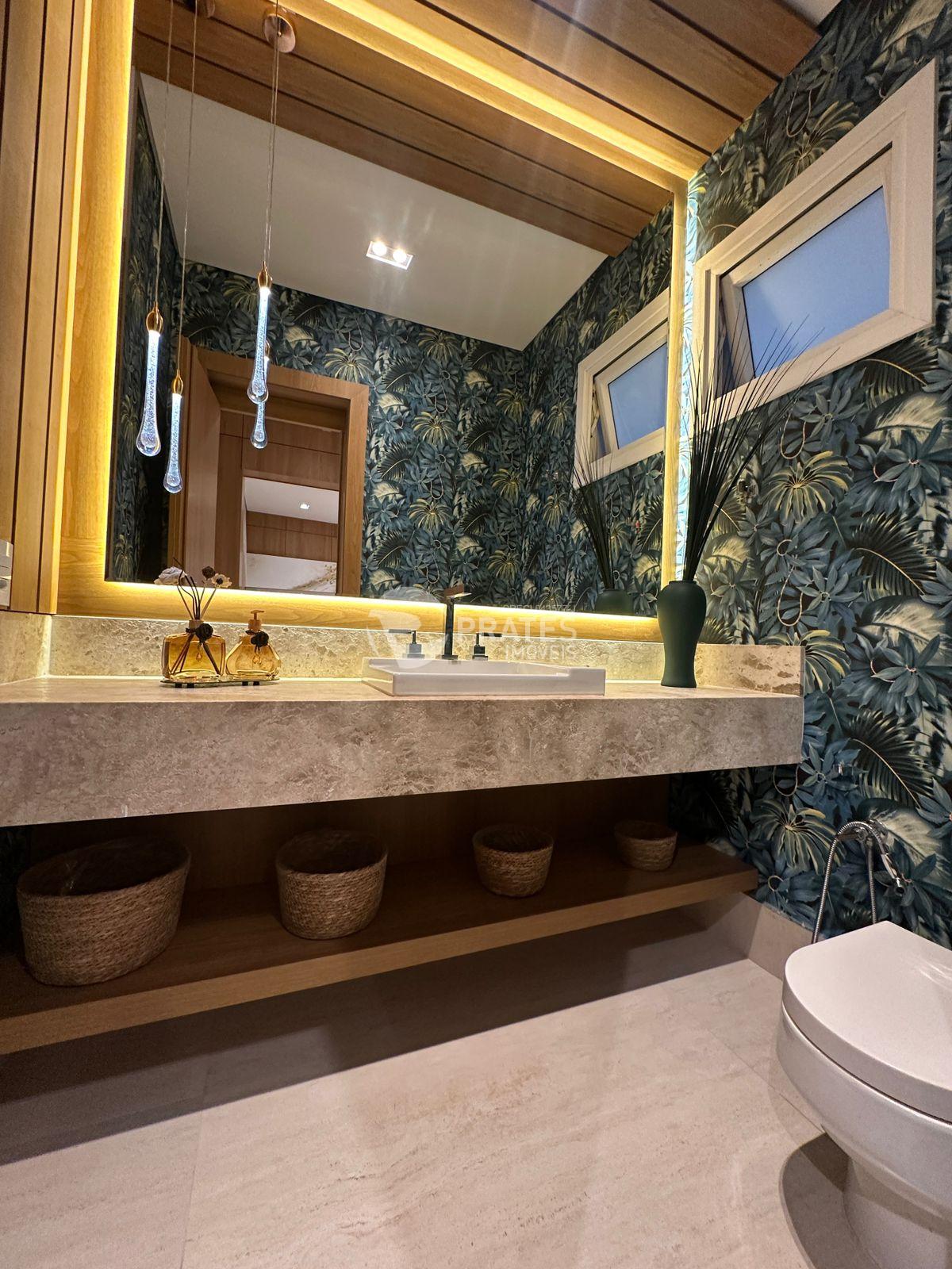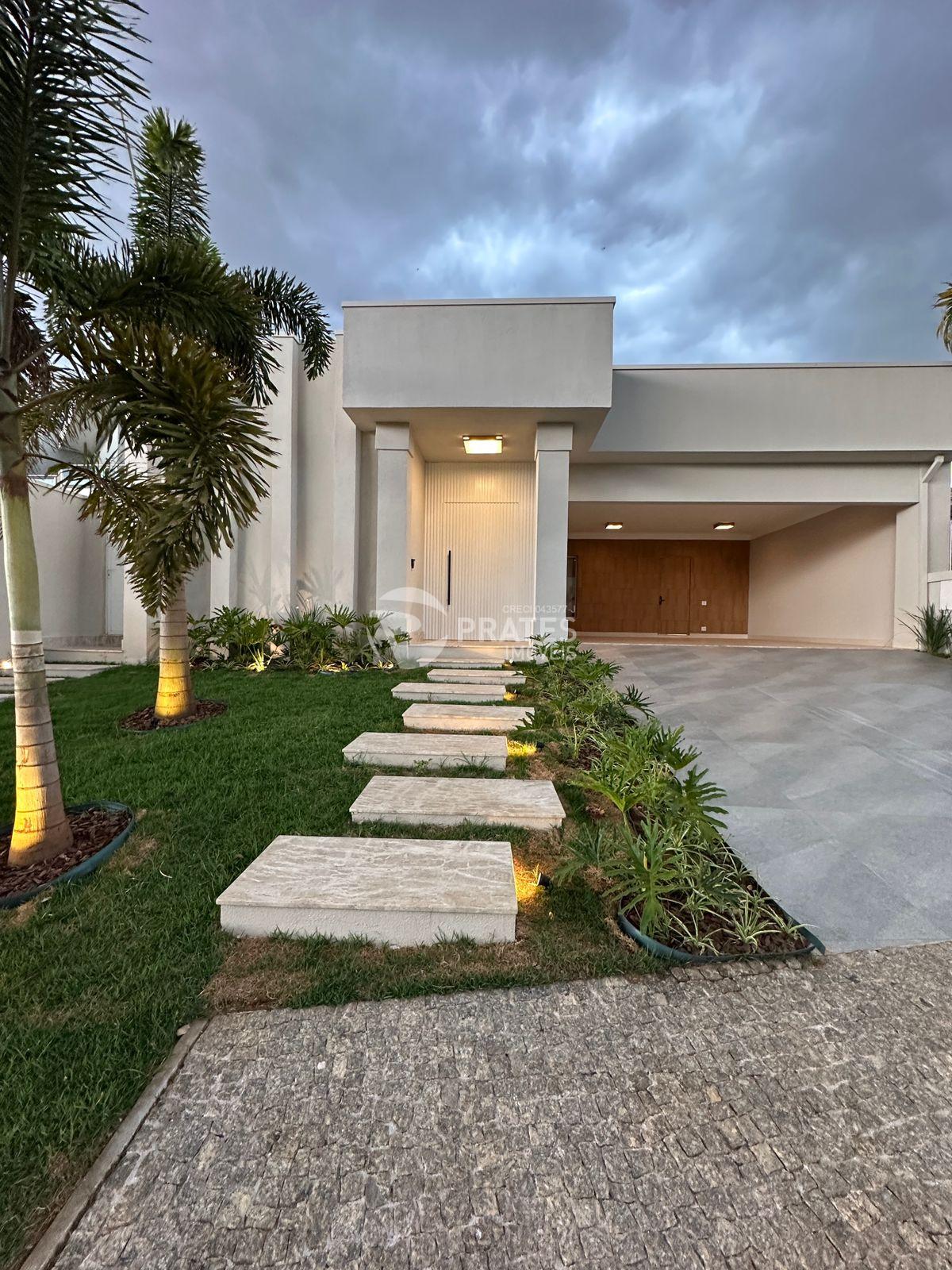 Casa térrea contendo 3 amplas suítes, armários, closets, ar condicionado, salas de tv e jantar, cozinha planejada, espaço gourmet com churrasqueira, lavanderia, 2 vagas, piscina com banheiro externo, sauna