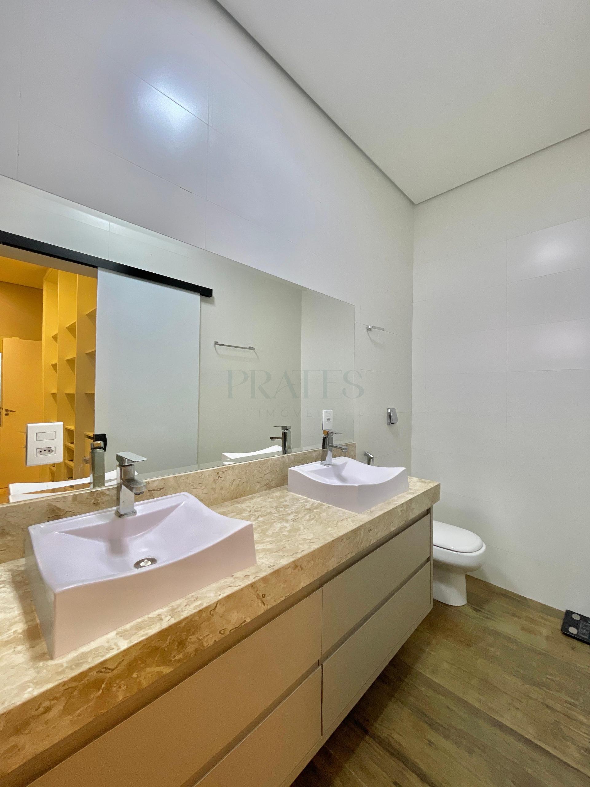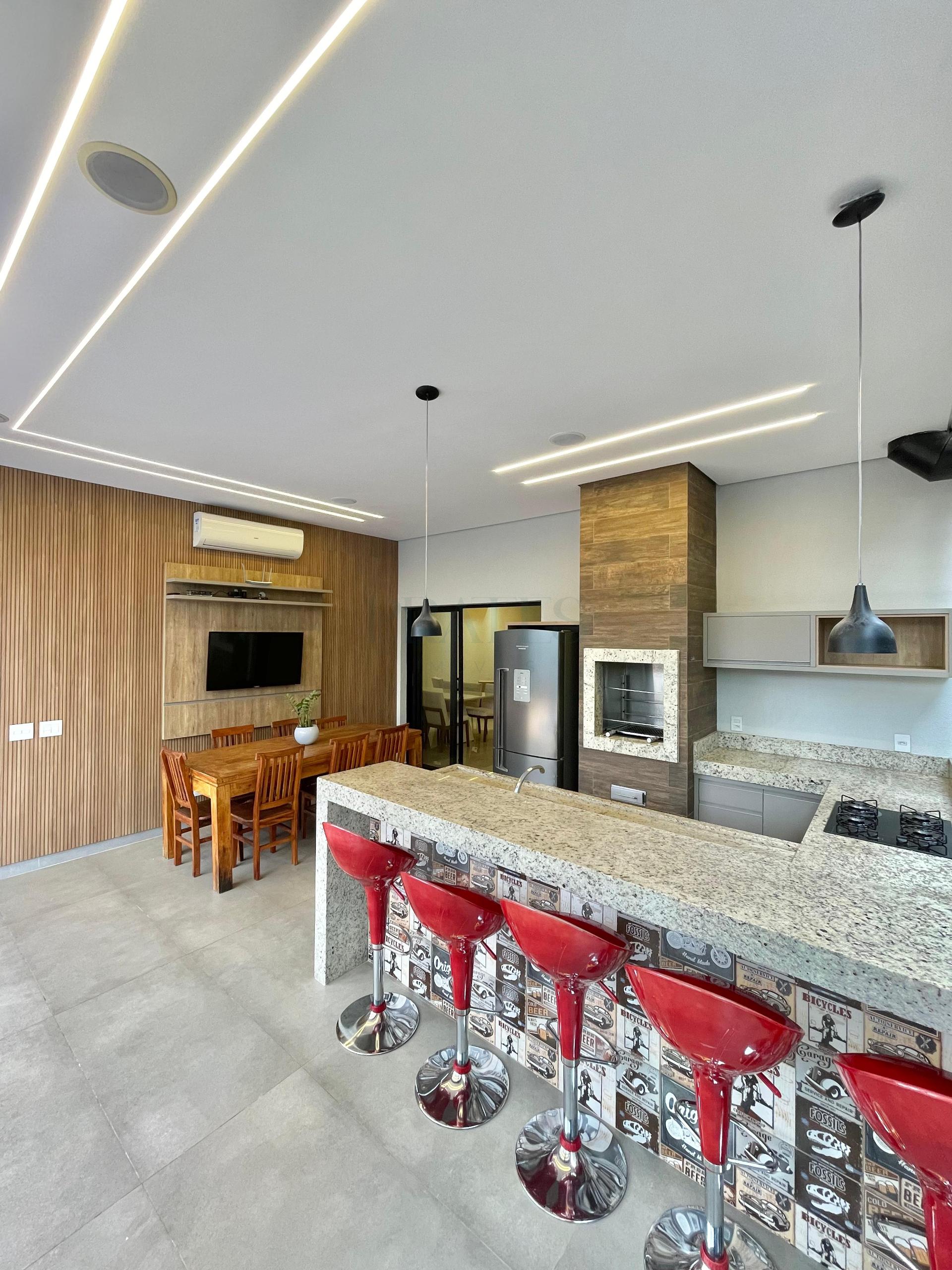 Sobrado com 3 suítes, a master com closet e sacada, salas de estar e sala de jantar, cozinha americana integrada, lavabo, espaço gourmet com churrasqueira e piscina