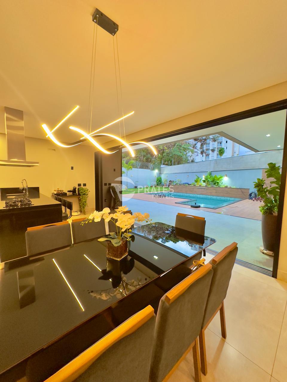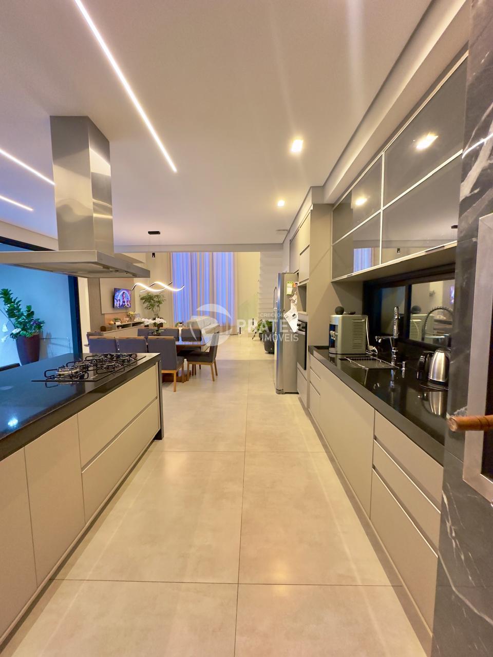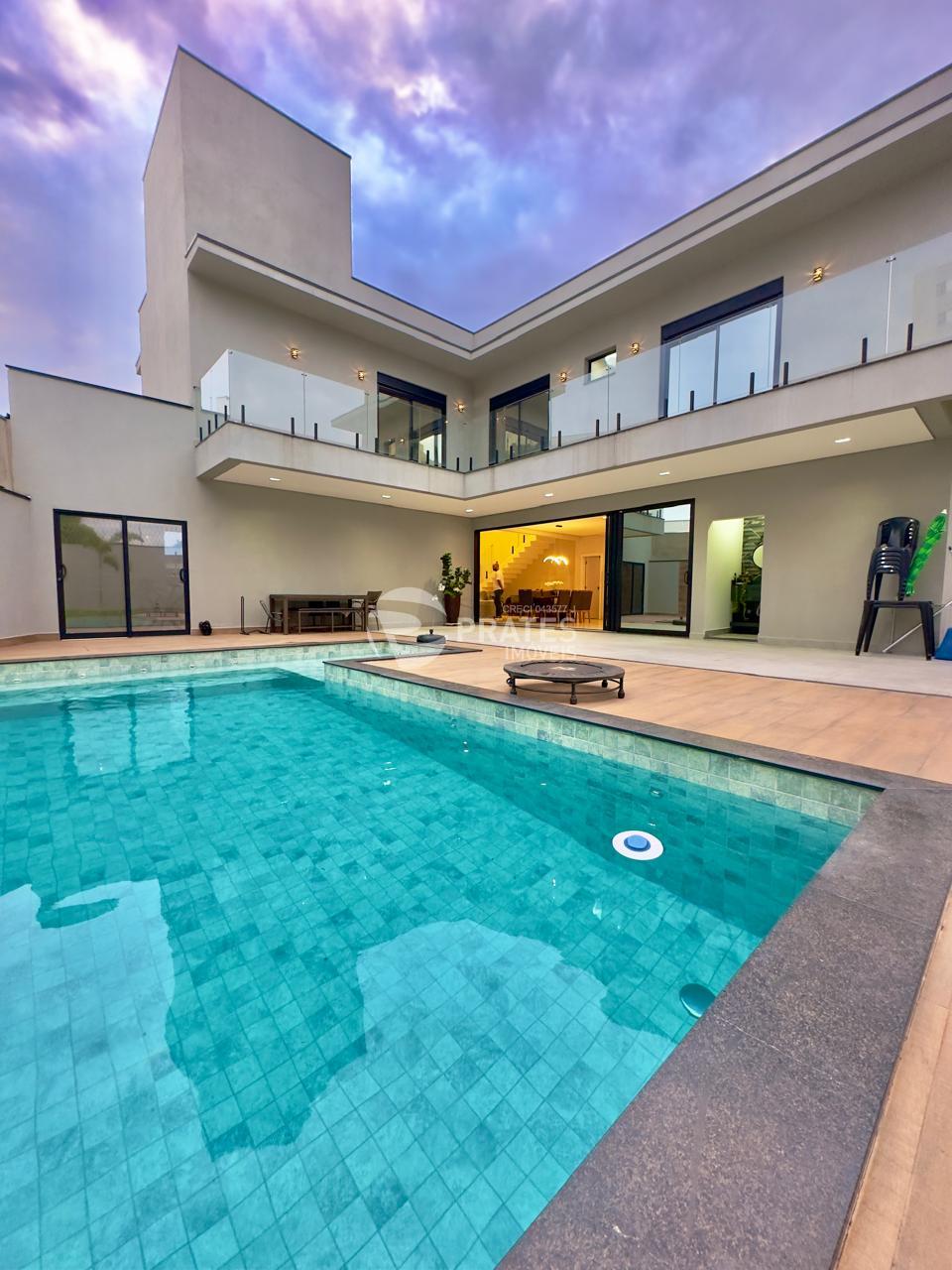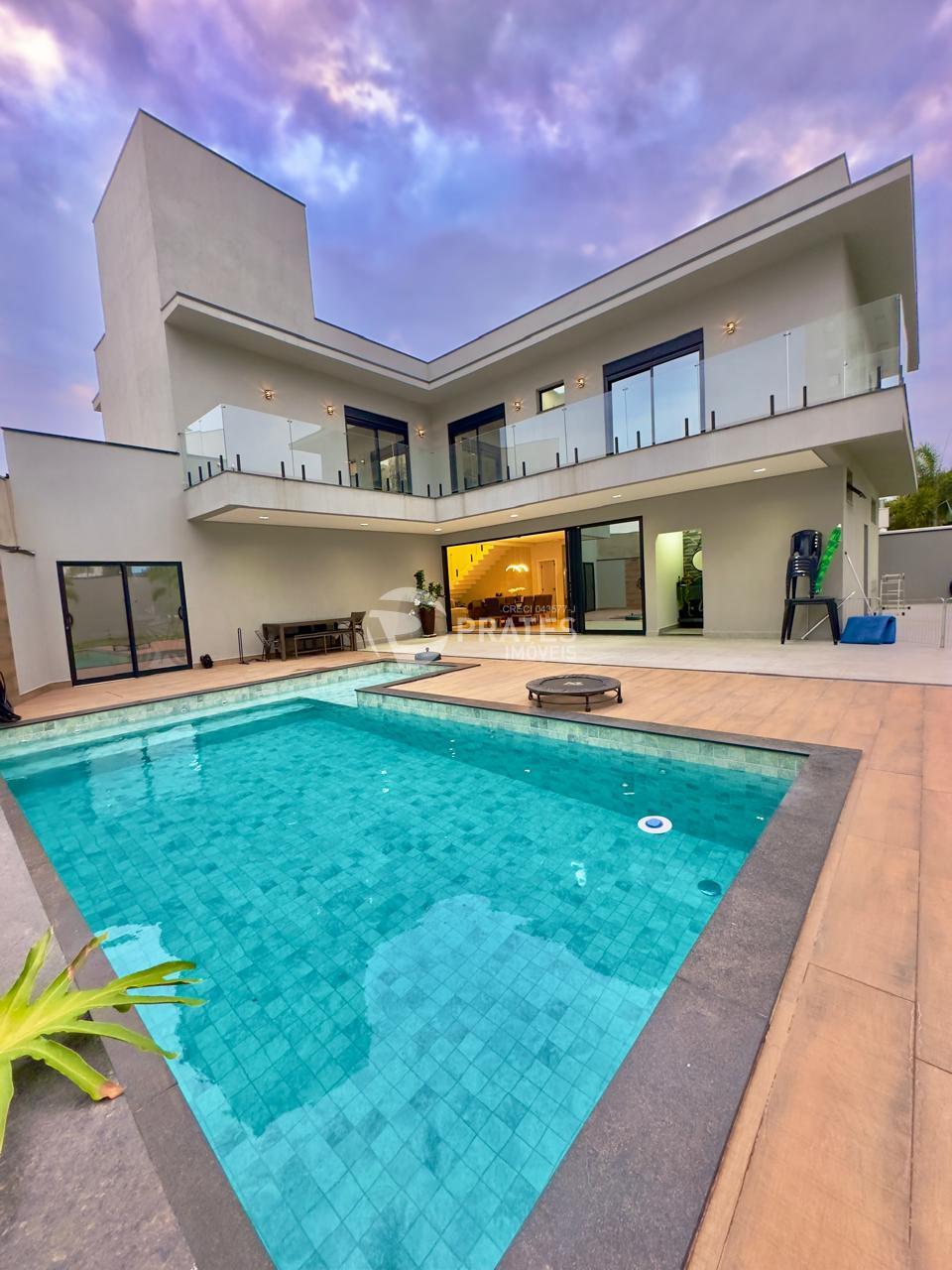 Casa contendo, piso superior, 4 suítes sendo 2 com closet, 3 com sacada, todas climatizadas, piso térreo, sala de estar e jantar, cozinha gourmet, lavabo, despensa, lavanderia e despejo, piscina aquecida com hidro e cascata, churrasqueira.