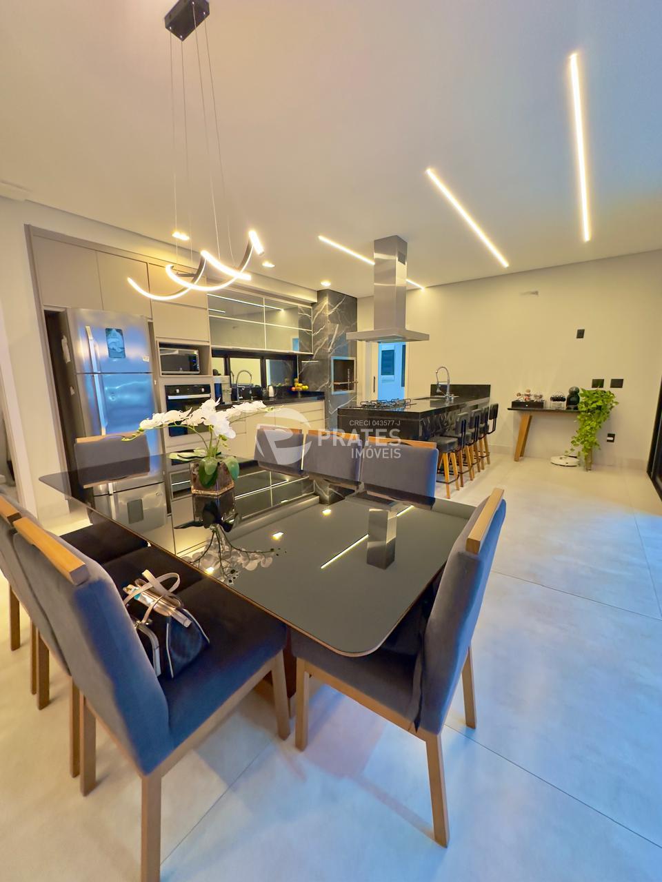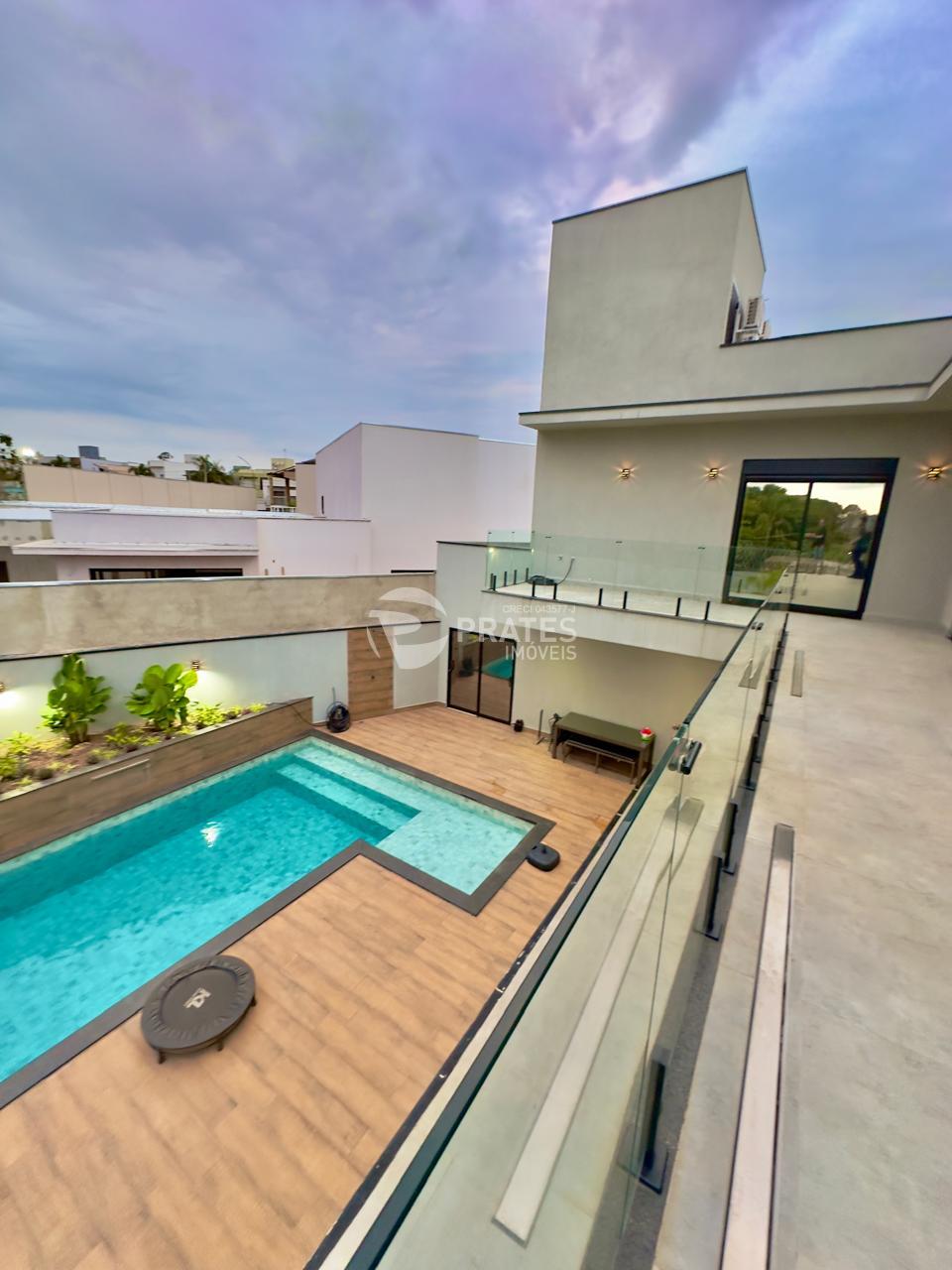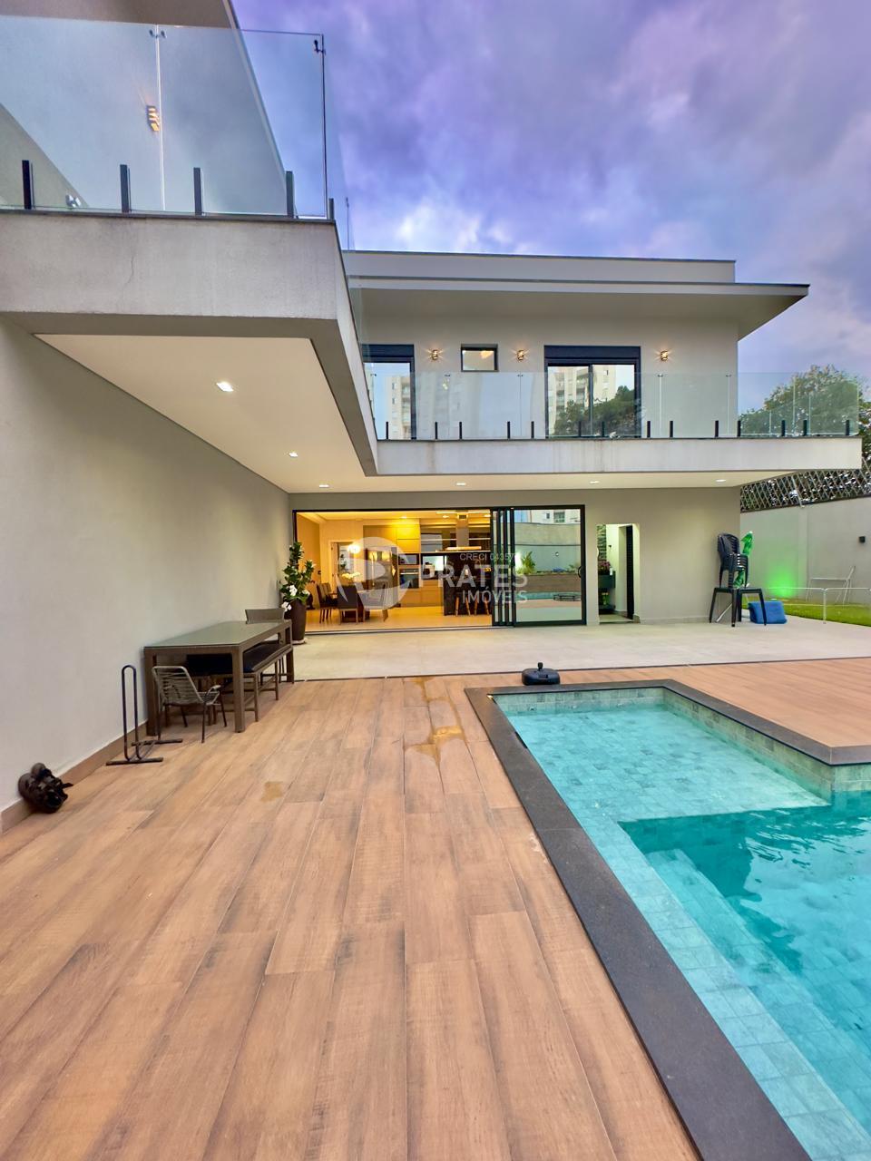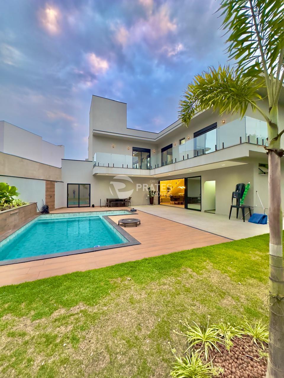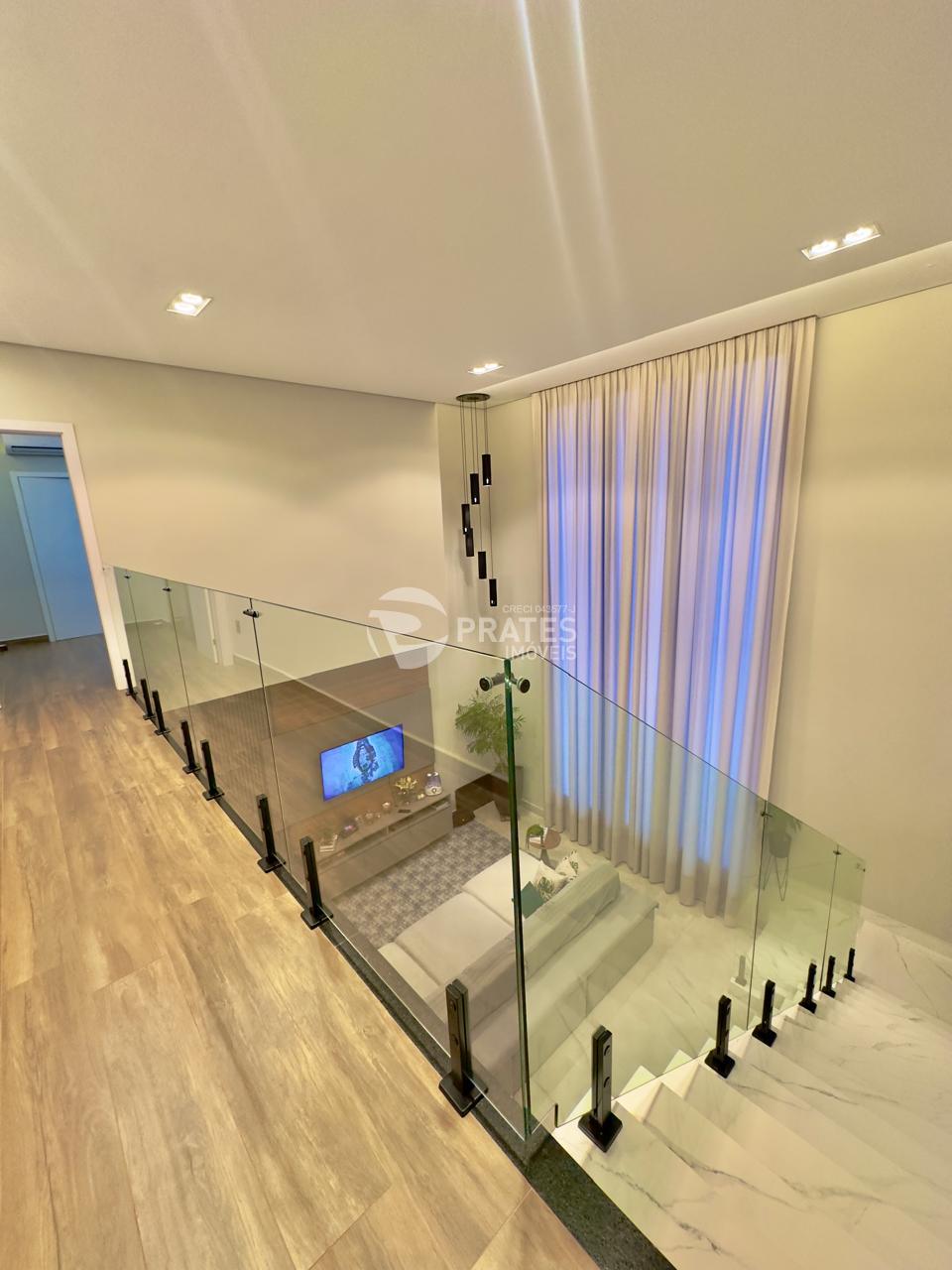 Casa contendo, piso superior, 4 suítes sendo 2 com closet, 3 com sacada, todas climatizadas, piso térreo, sala de estar e jantar, cozinha gourmet, lavabo, despensa, lavanderia e despejo, piscina aquecida com hidro e cascata, churrasqueira.