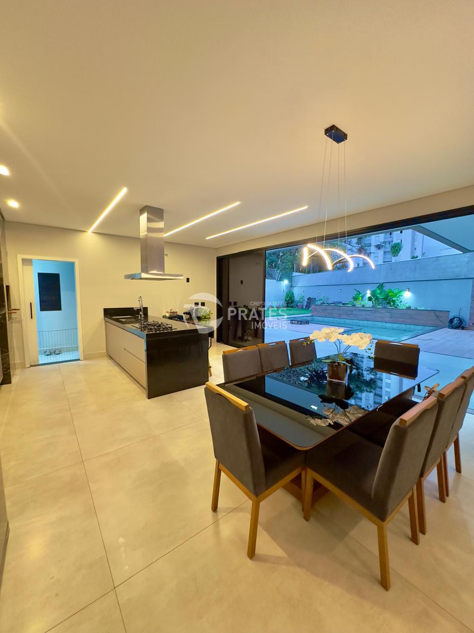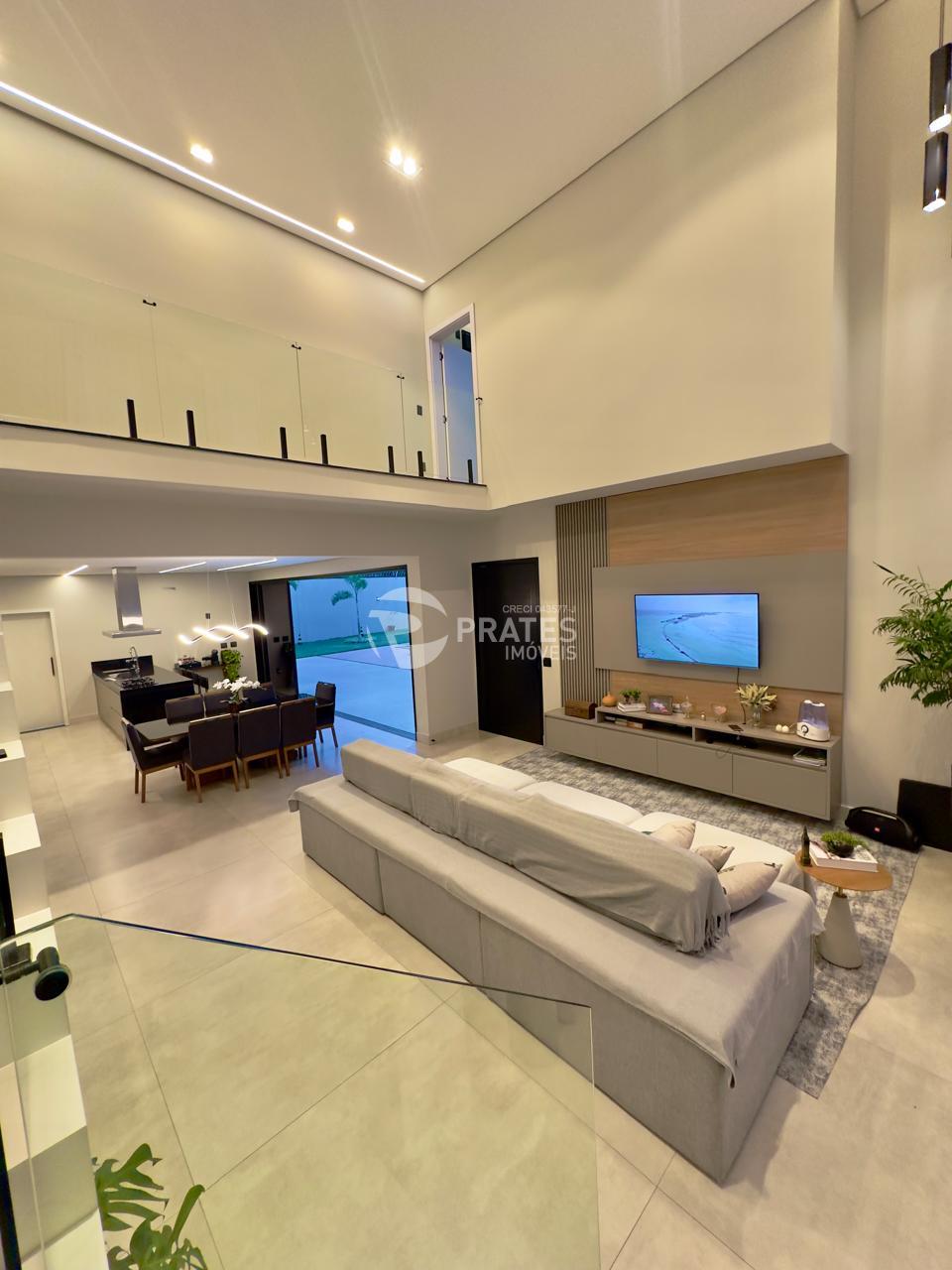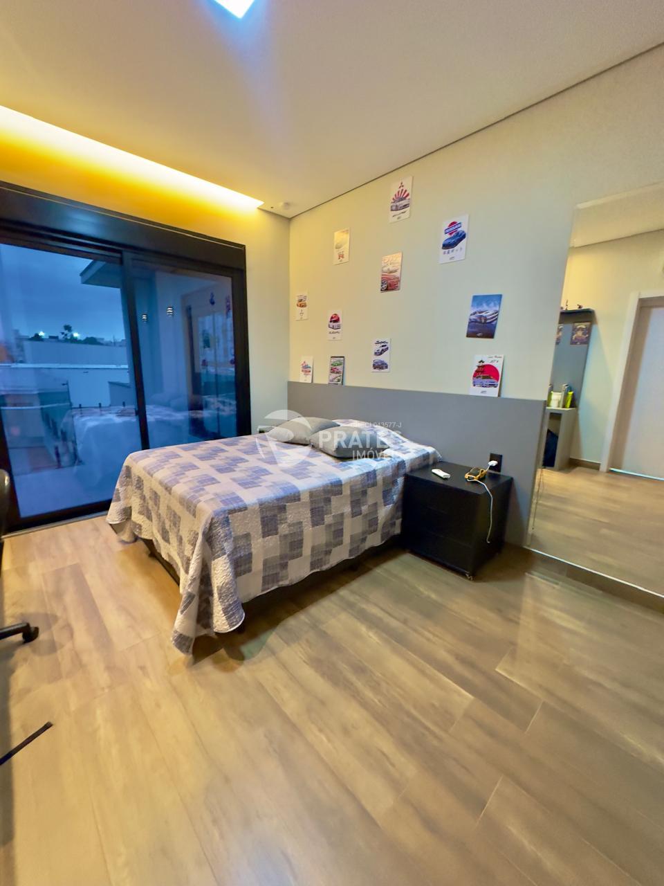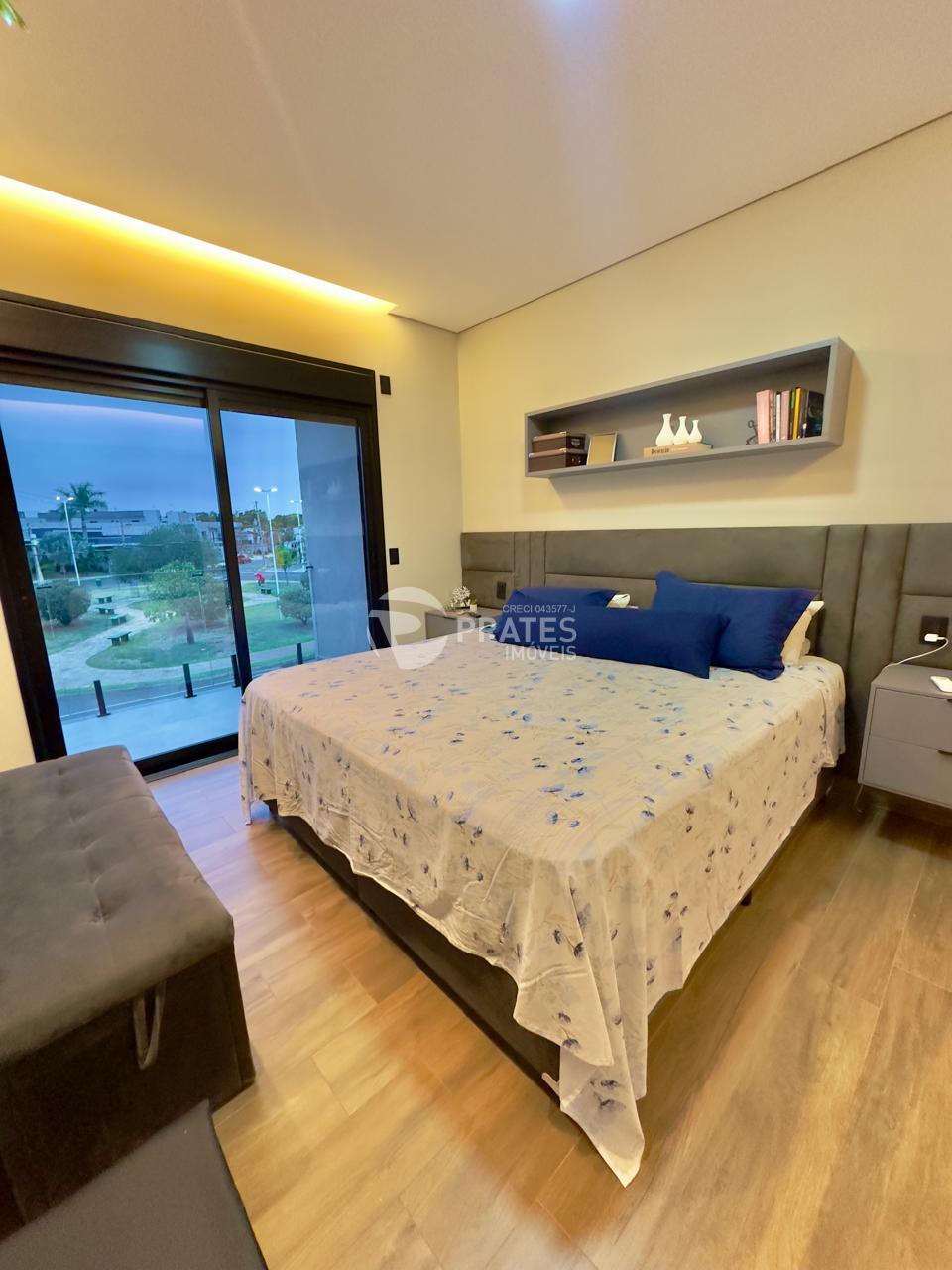 Casa contendo, piso superior, 4 suítes sendo 2 com closet, 3 com sacada, todas climatizadas, piso térreo, sala de estar e jantar, cozinha gourmet, lavabo, despensa, lavanderia e despejo, piscina aquecida com hidro e cascata, churrasqueira.