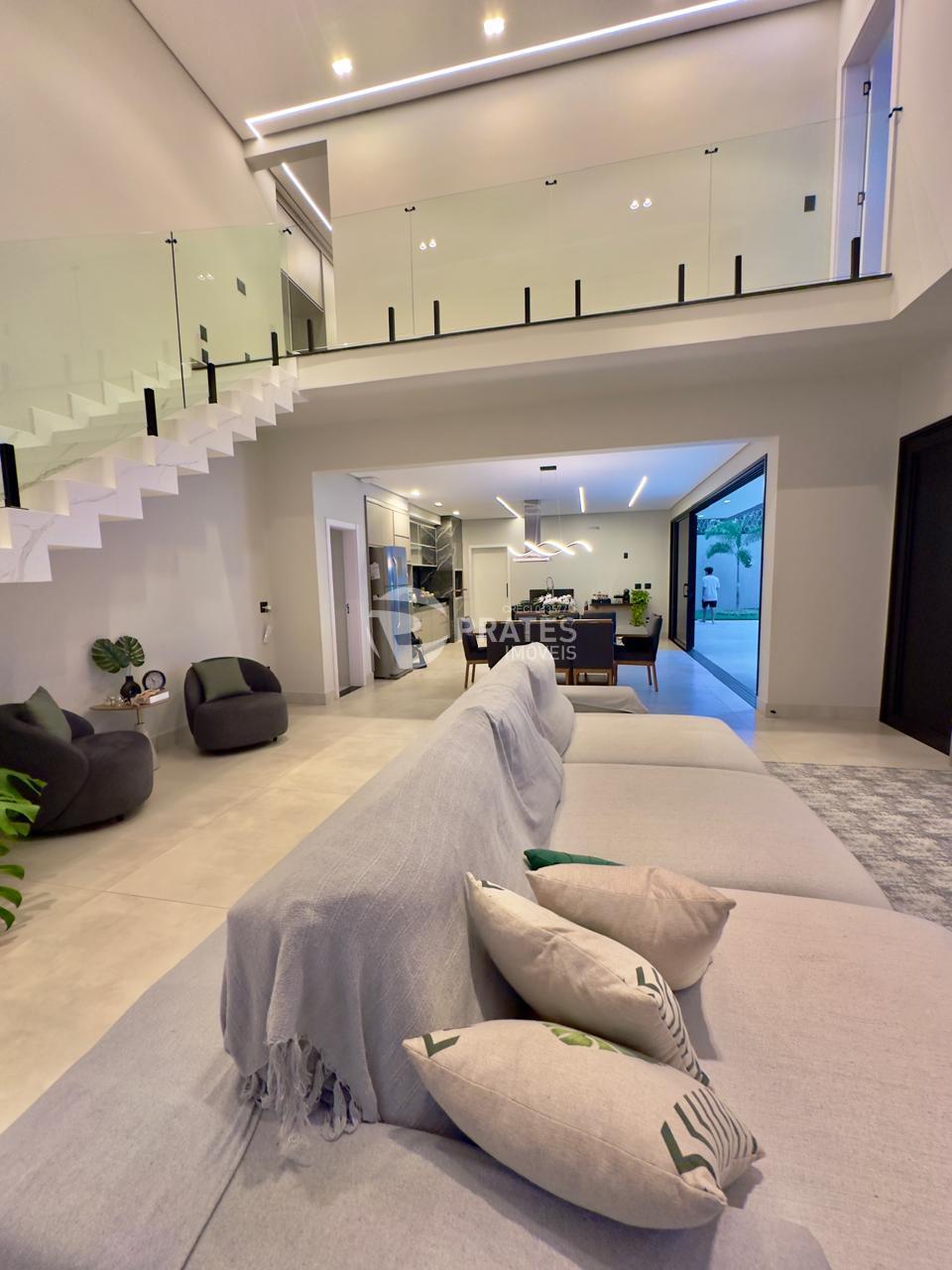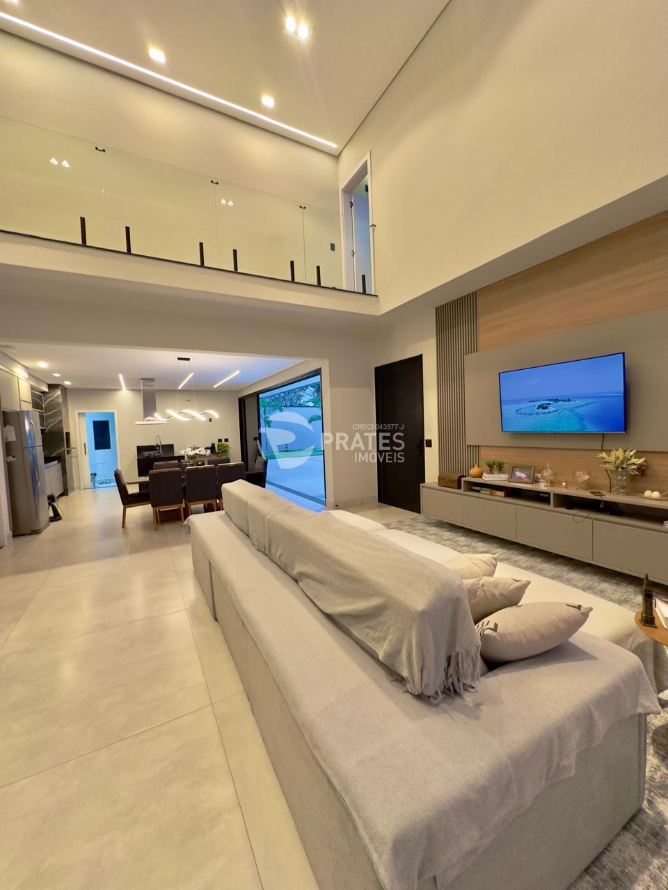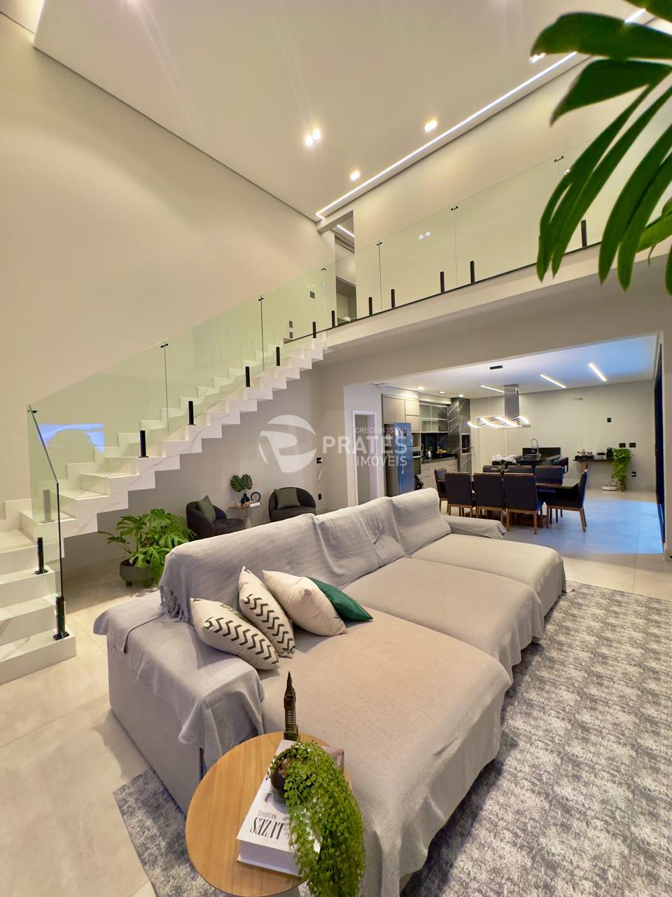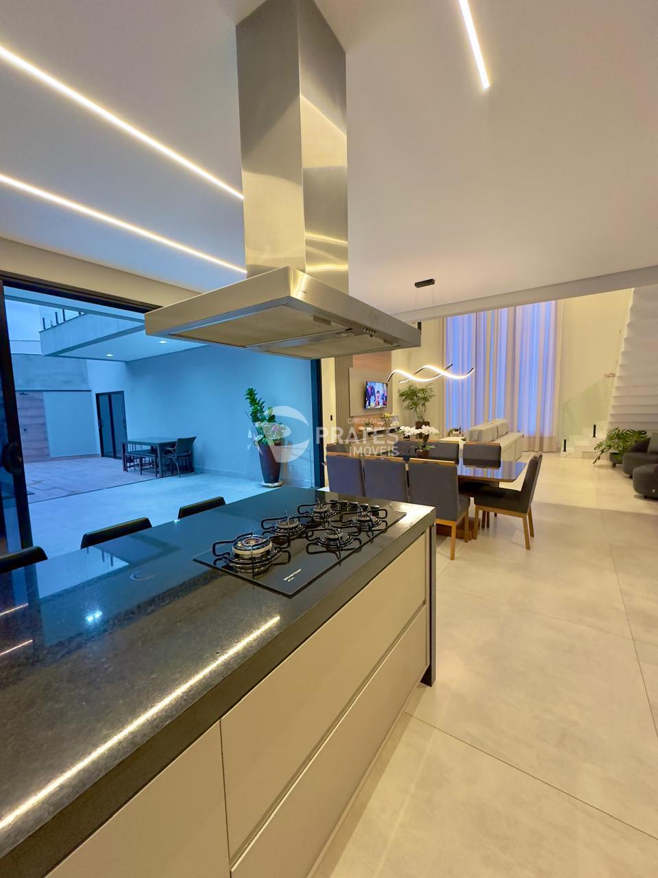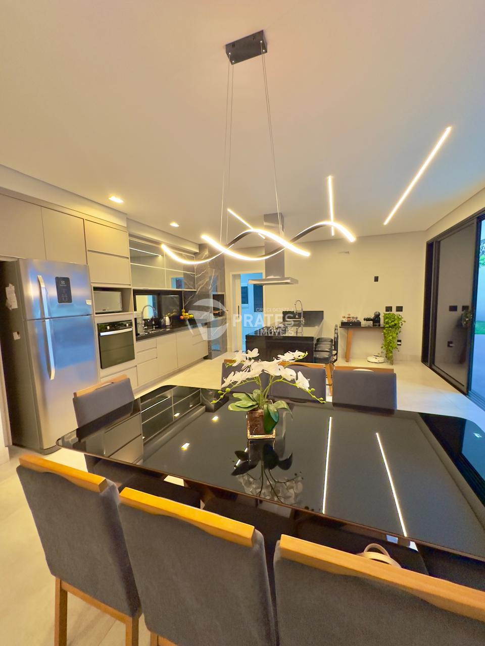 Casa contendo, piso superior, 4 suítes sendo 2 com closet, 3 com sacada, todas climatizadas, piso térreo, sala de estar e jantar, cozinha gourmet, lavabo, despensa, lavanderia e despejo, piscina aquecida com hidro e cascata, churrasqueira.