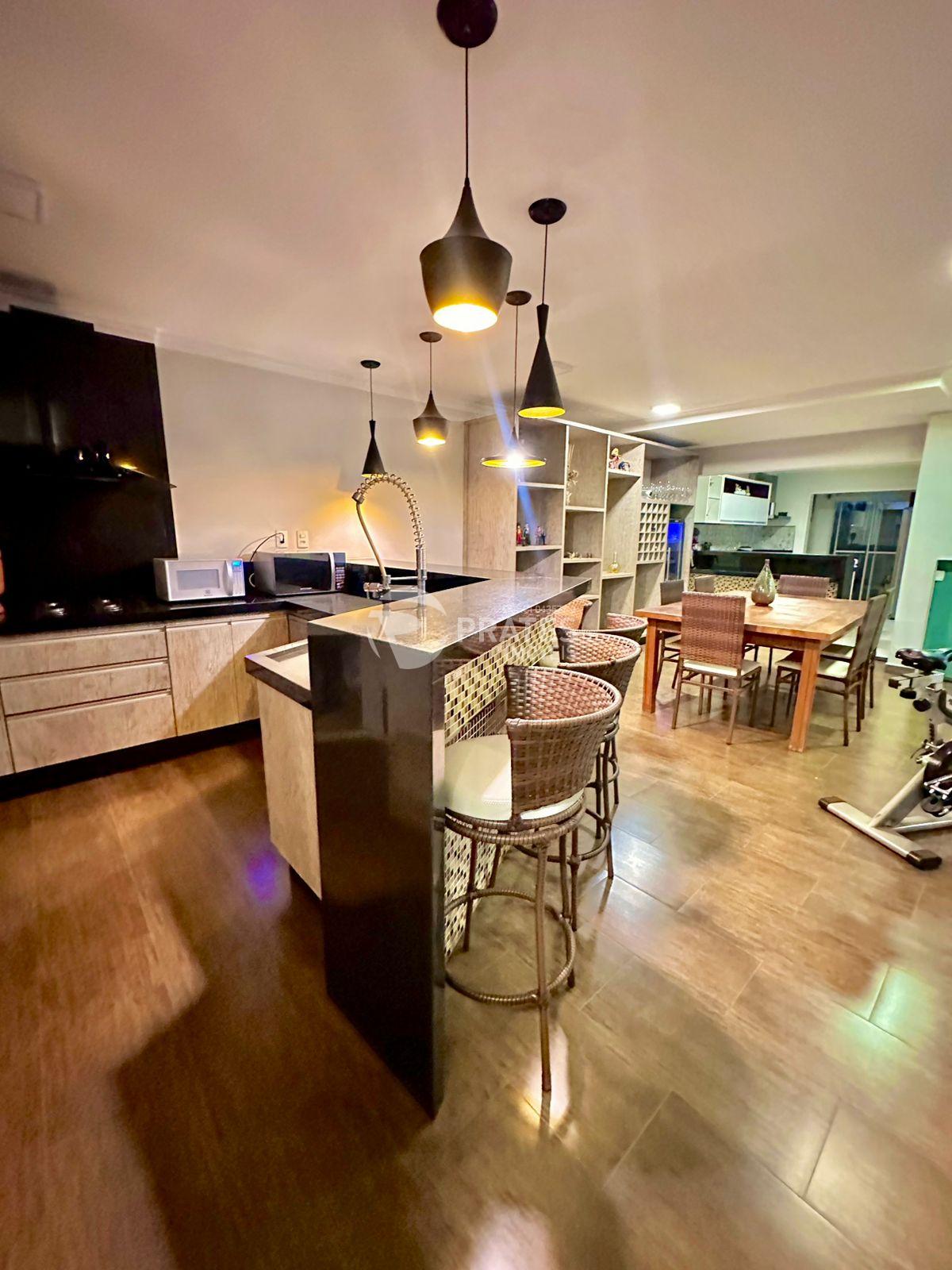 Casa Contendo Piso Superior 3 dormitórios, sendo 1 suíte master todos com armários planejados e ar condicionado, piso térreo sala de estar e jantar integradas ao espaço gourmet com churrasqueira, forno de pizza, 2 vagas de garagem.